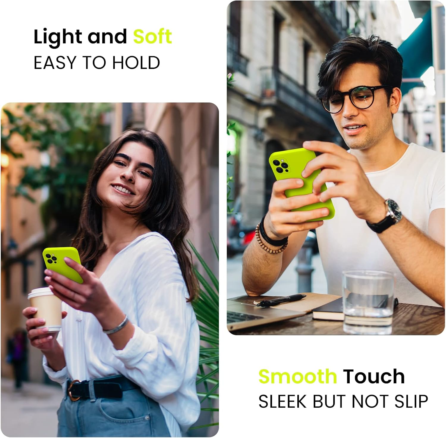 FireNova for iPhone 14 Pro Case, Silicone Upgraded [Camera Protection] Phone Case with [2 Screen Protectors], Soft Anti-Scratch Microfiber Lining Inside, 6.1 inch,Fluorescent Green