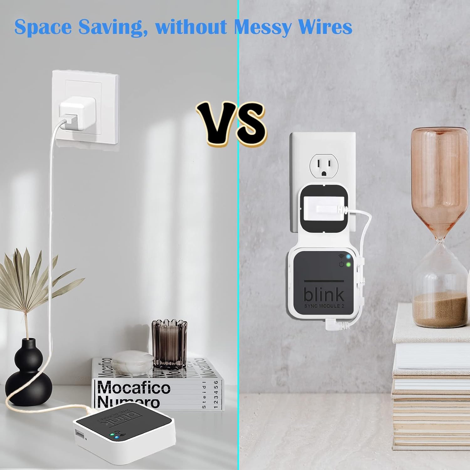 - 【Neat and Save Space】With this compact outlet mount, your Blink Sync Module 2 installation is more neat and clean than before. The extra custom short USB cord will help you out of the messy wires.
