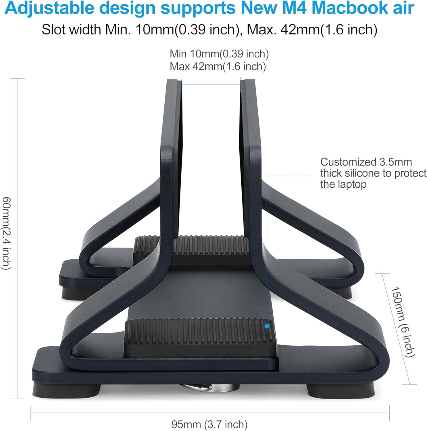Aluminum Vertical Laptop Stand Dock Holder, Adjustable Slot Width 12-42mm, Space-Saving Upright Storage for MacBook and Laptops
