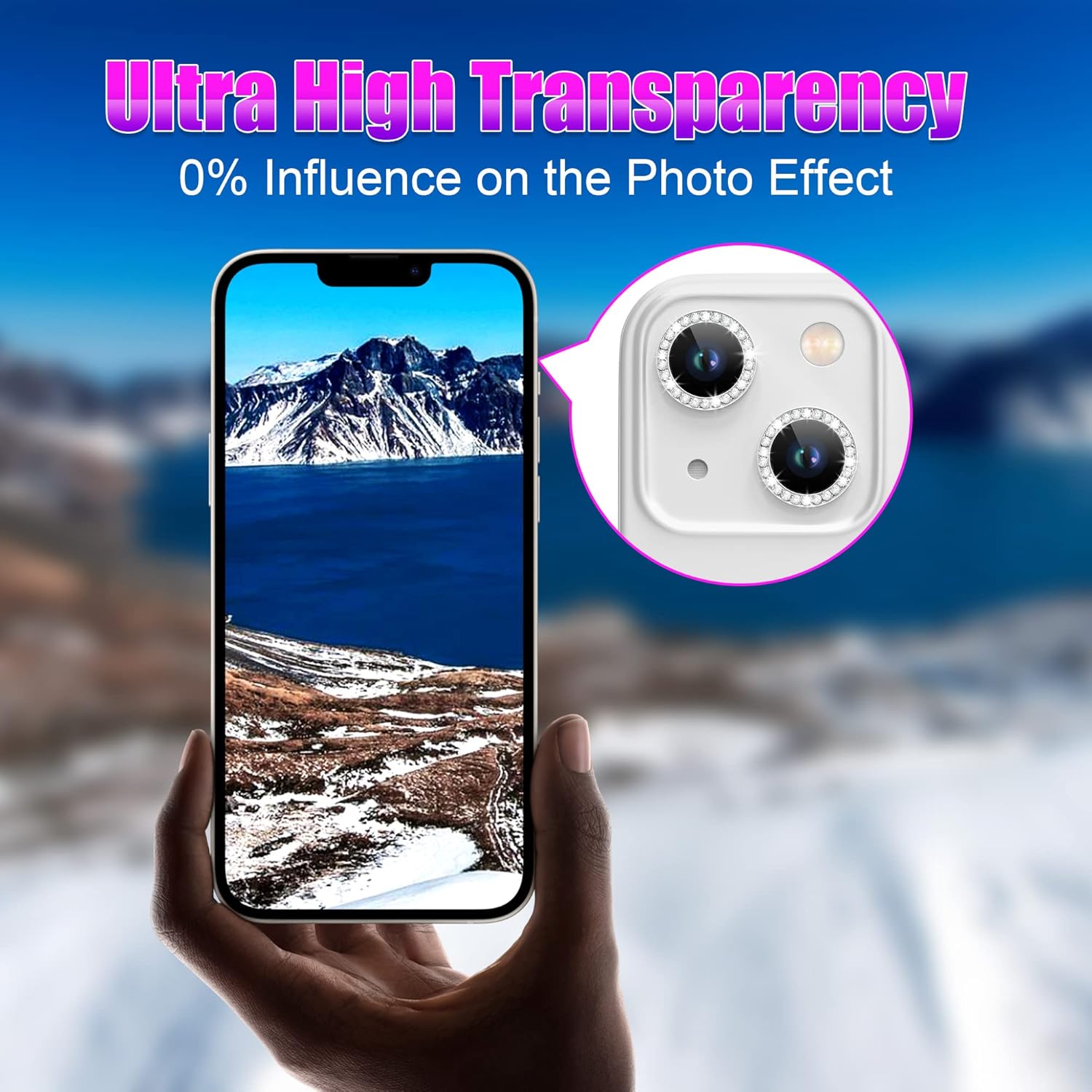 AGVEE 3+3 6 Pack for iPhone 13 6.1 inch / 13 Mini 5.4 inch Camera Lens Protector, Bling Diamond & Bling Glitter Metal Ring 9H Tempered HD Glass Camera Protector Cover Film, Bling-Silver