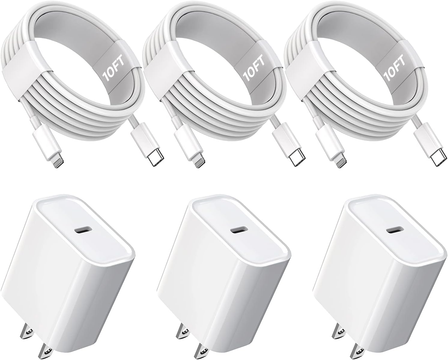 - [ 100% Satisfaction Efficient After Sales Reply] If you have any question when you receive this package containing 3pack iPhone Charger 10 Foot USB Type C to Lightning Cable + iPhone Charger Fast Charging Block,please do not hesitate to click the after-sales button.We are very happy to have communication with you and promise to reply to your questions within 24 hours