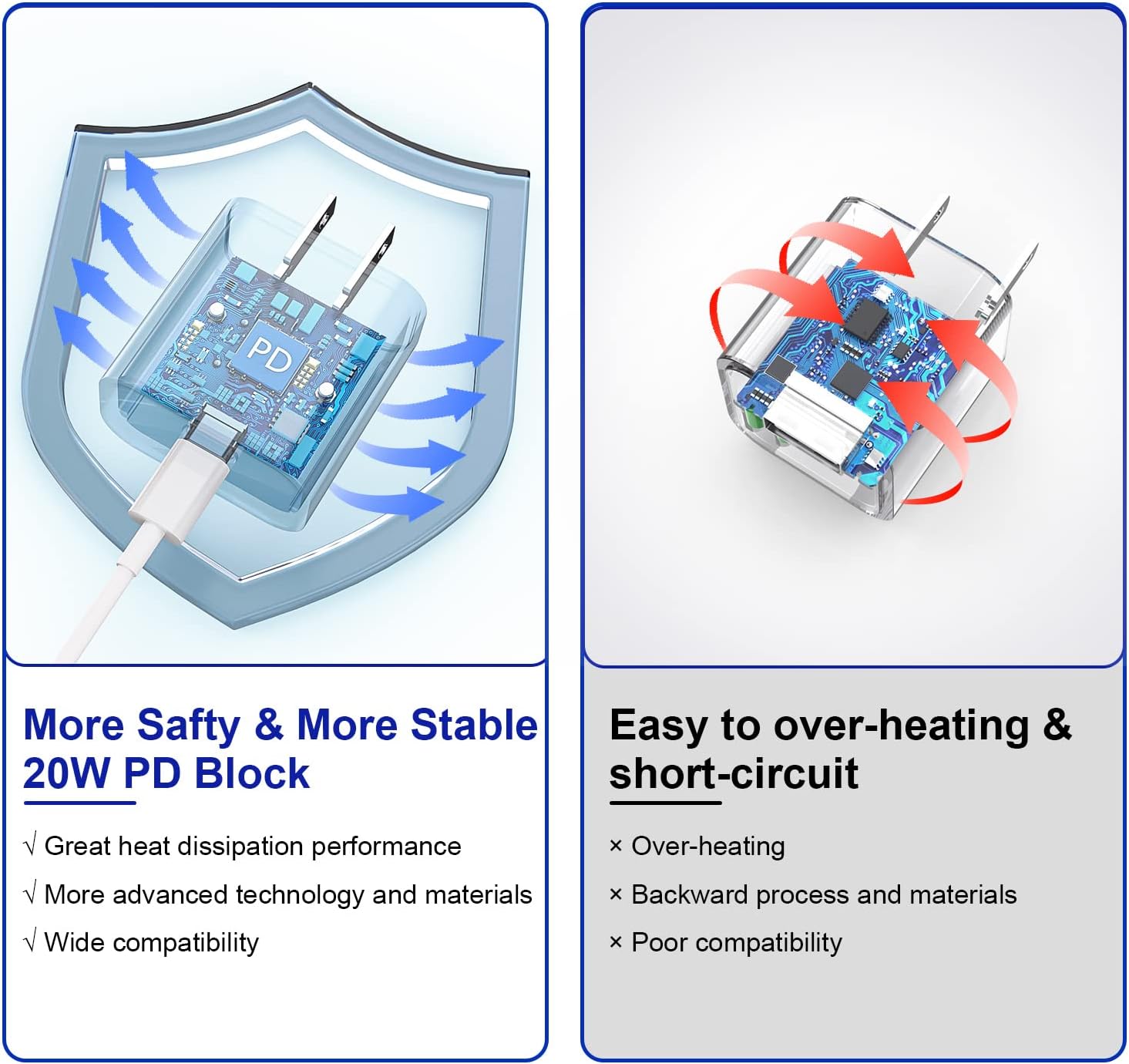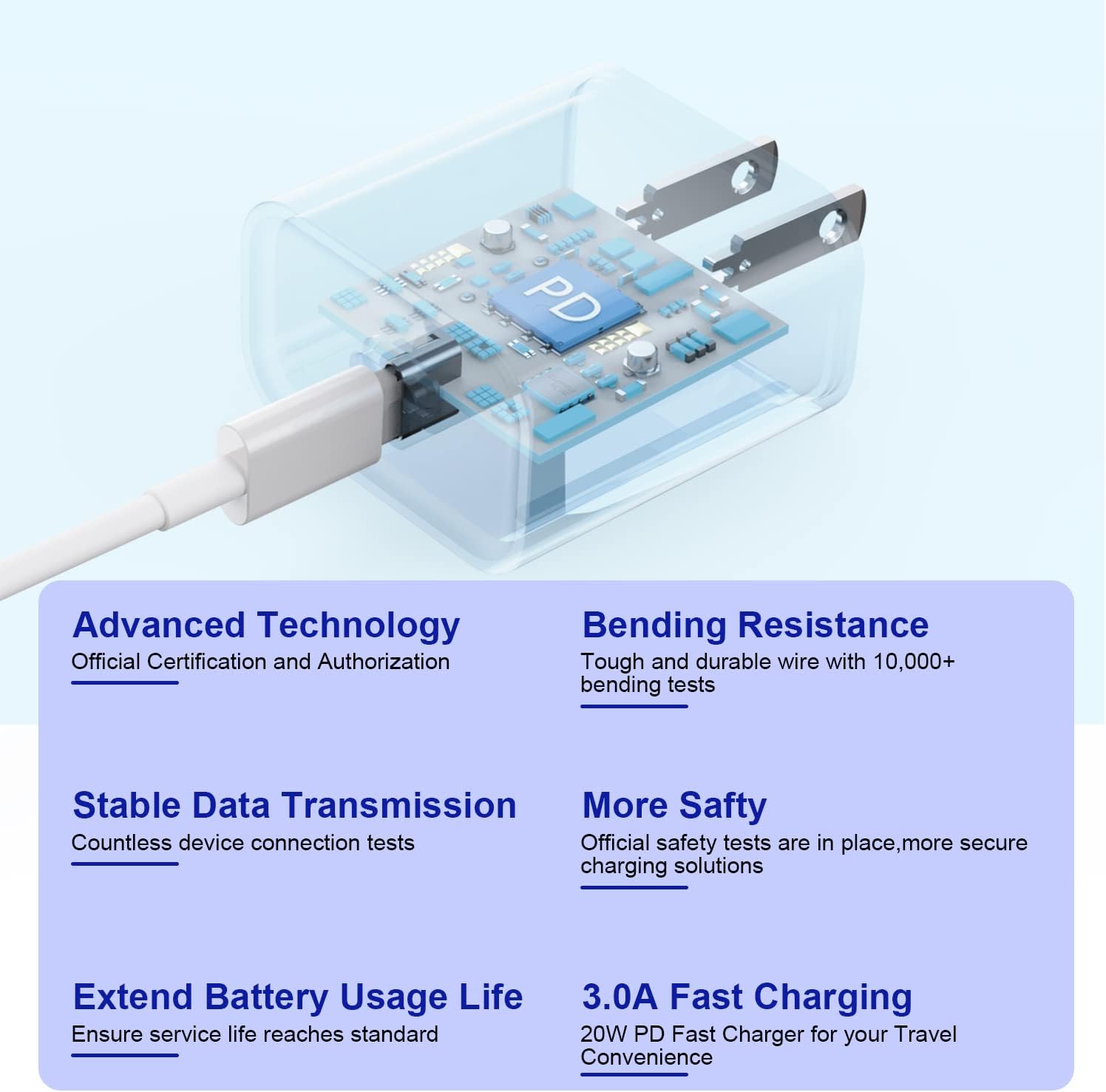 - [ UL Authentication] - Our 3 pack iPhone charger fast charging product has got UL certificate.The lightning cable built-in smart identification chip which automatically protect your device from damage.Our fast charger iPhone charging block is 50% faster than 5W charger which saving more time of your life.The Official guarantees for durability and reduce the problems of overheating,poor contact when your iPhone/iPad/iPod/AirPods are charged