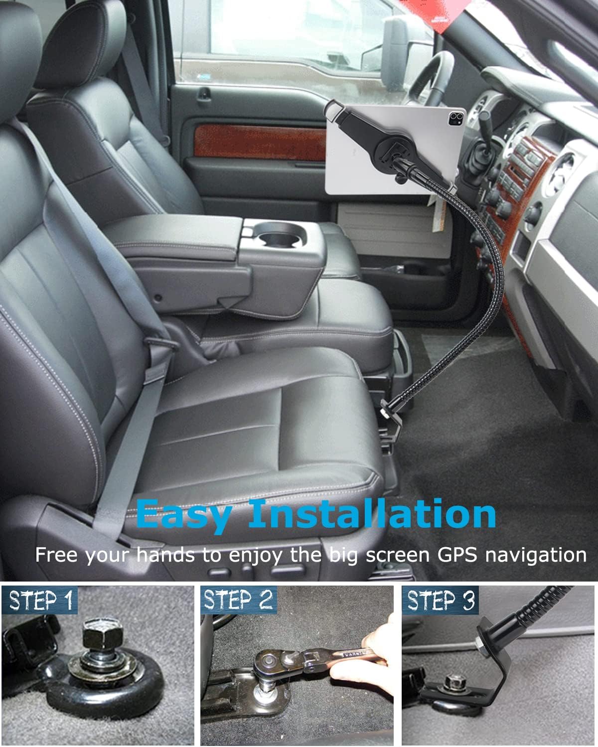 Gooseneck Car/Truck Seat Rail Tablet Holder Mount for 9.5"-14.5" iPad, Heavy Duty Car Floor Bolt Tablet Mount for iPad Pro 11, 12.9/Air, Galaxy Tabs, Surface Pro/Go, Tablets, Other 13" Devices