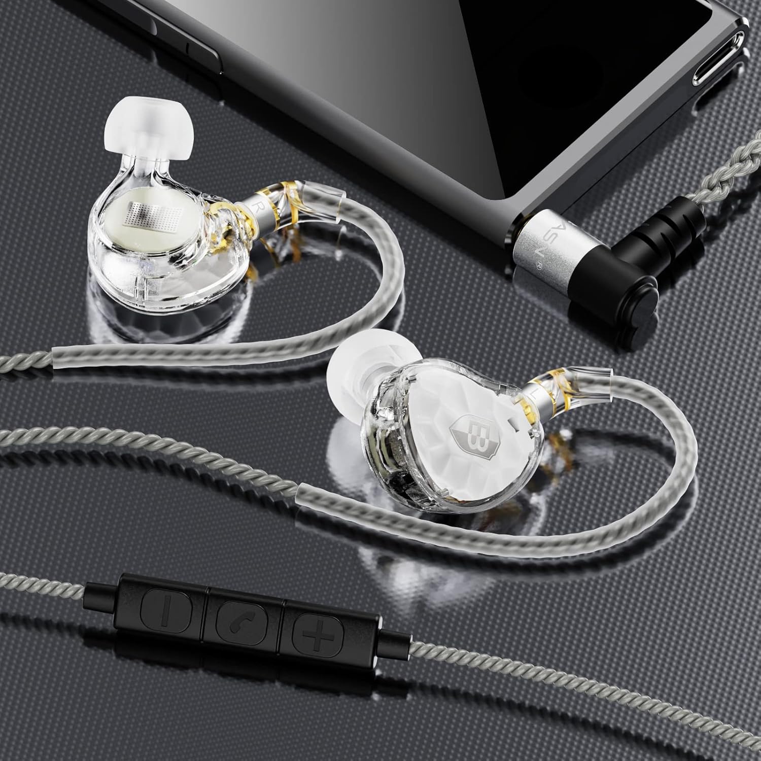 - [𝗦𝘂𝗽𝗲𝗿𝗶𝗼𝗿 𝗤𝘂𝗮𝗹𝗶𝘁𝘆 & 𝗗𝗲𝘁𝗮𝗰𝗵𝗲𝗱 𝗖𝗮𝗯𝗹𝗲𝘀] This in ear headphones comes with a high-purity single crystal copper MMCX connector cable, which is woven with Litz shielding structure to deliver more clear sound details; And the planar iem headphones also provide an in-line Mic cable with volume control for better listening experience