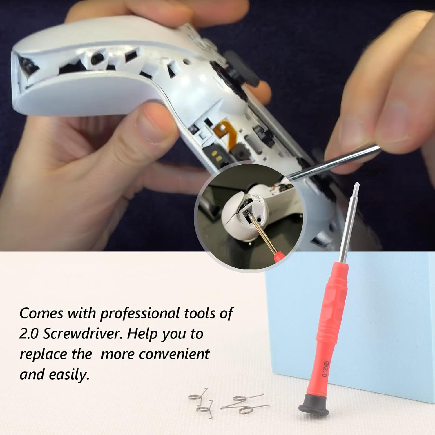 - ⏰【Easy to Install】Comes with 4pcs for PS5 L2 R2 metal trigger keys springs and 1 pcs screwdriver. Help you to replace the microphone flex cable more convenient and easily. Let your for PS5 controller restore the speed of the button.