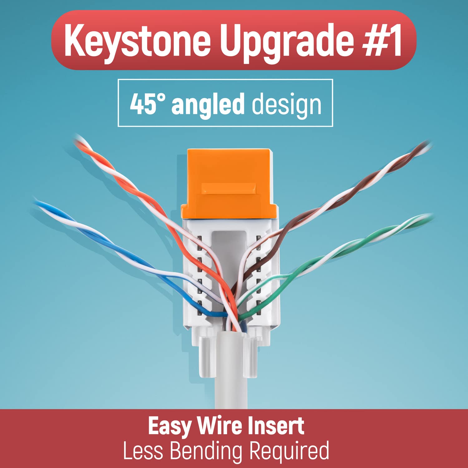 Everest easyJACK - 45° Angled Speed Termination Keystone Tool Set - with 20-Pack of RJ45 Cat6 Keystone Jacks in Orange (Slim Profile Design) - Time Saver Network Punch Down Tool Cat6