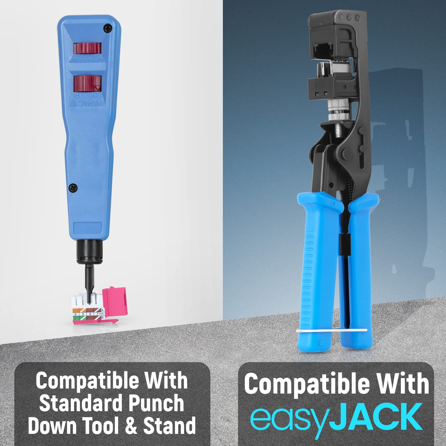 - Compatibility - compatible with our 90 degree angled speed termination tool - easyJACK (B094WB91H3). These cat 6 jacks keystone rj45 can also work in conjunction with a standard punch down tool and punch down stand for convenience.