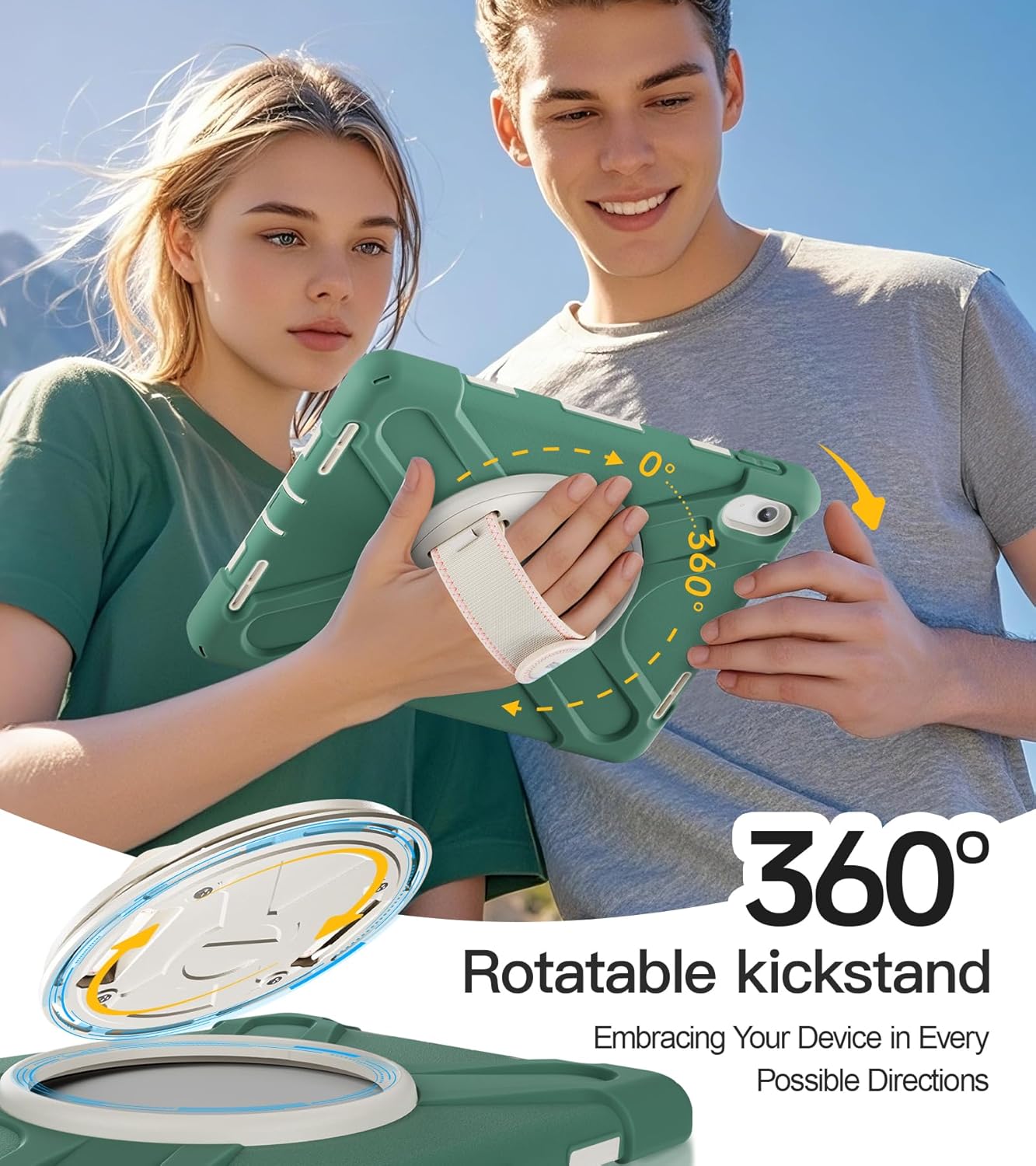- [360°Rotating Handle/Stand & Shoulder Strap]:This ipad 11/10.9 inch case have a 360° rotation system that includes a kickstand and a hand strap, by rotating it, you can hold your ipad at any angle, by utilizing the swivel and the stand, you can support your ipad at multiple angles.The adjustable shoulder strap allows you to carry or hang your iPad at any time, so that you can provide more convenience in outdoor sports, traveling.