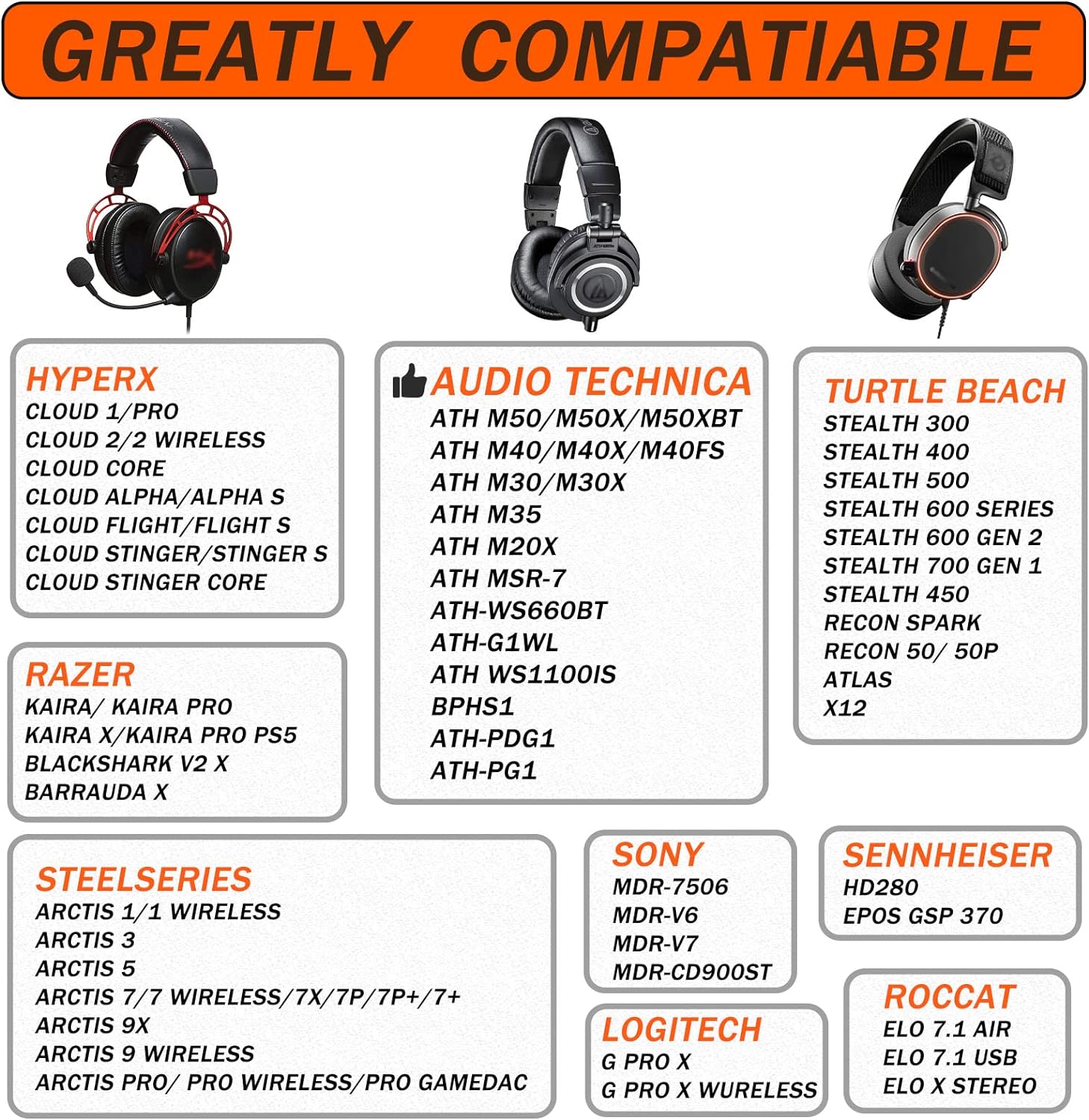 - Compatible Devices : ATH M50/M50X/M50XBT/M40/M40X/M40FS/M30/M30X/M35/M20X/MSR-7, HyperX cloud 1/2 / 3 cloud alpha/cloud flight/cloud stinger/cloud mix/cloud X, Sony MDR-7506/V6/V7/CD900ST, Steelseries Arctis 1/3/5/7/7X/7P/7P+/7+/9X wireless, Turtle Beach Stealth 300/400/500/600/ 600 Gen 2/700 Gen 1/ 450 series ATH M50/M50X/M50XBT/M40/M40X/M40FS/M30/M30X/M35/M20X/MSR-7, HyperX cloud 1/2 / 3 cloud alpha/cloud flight/cloud stinger/cloud mix/cloud X, Sony MDR-7506/V6/V7/CD900ST, Steelseries Arctis 1/3/5/7… See more