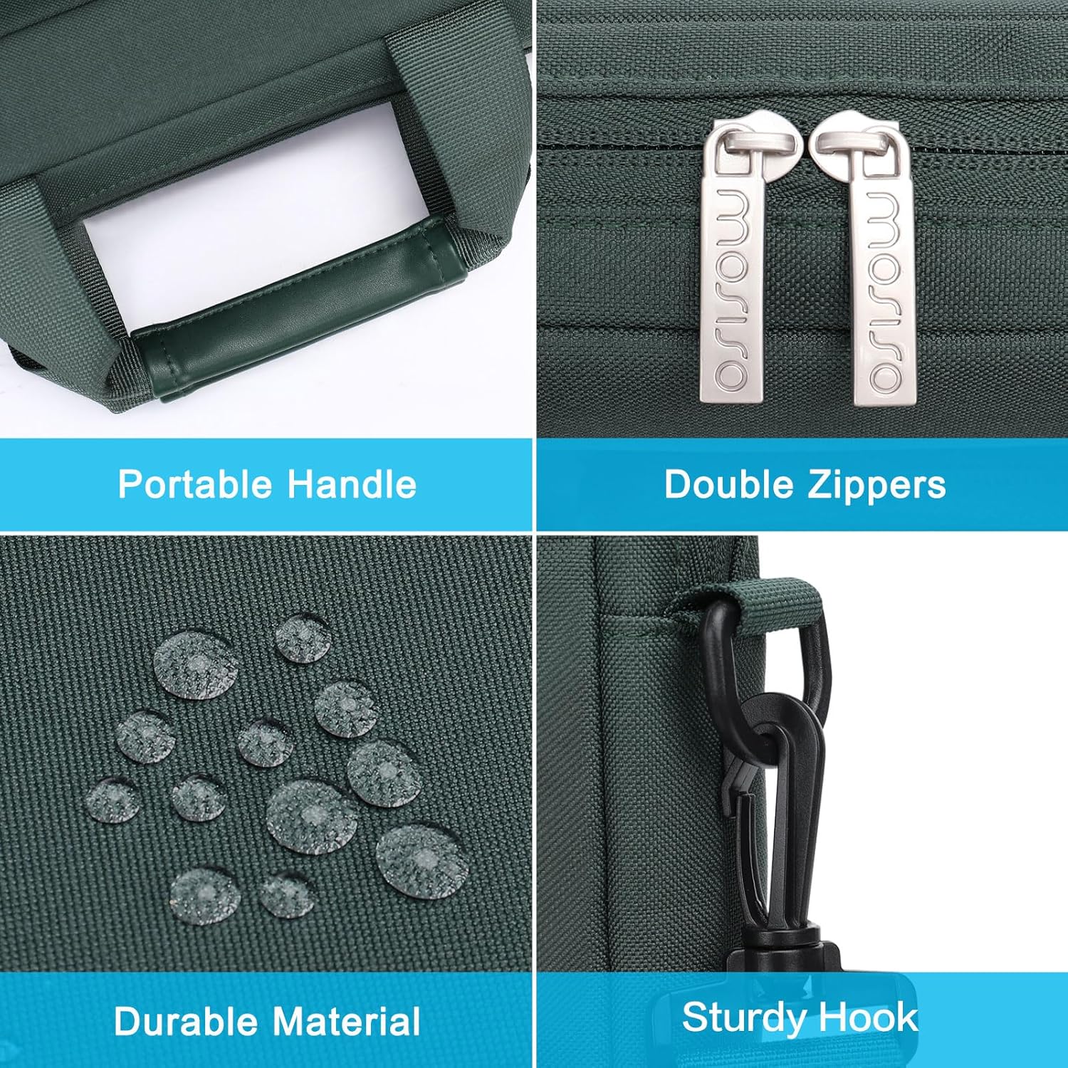 MOSISO Laptop Shoulder Bag, Computer Bag with 2 Raised&1 Flapover&1 Horizontal Pocket&Handle&Belt
