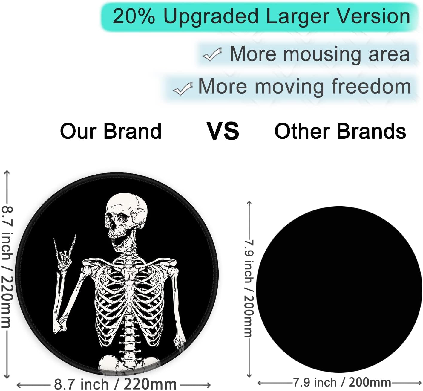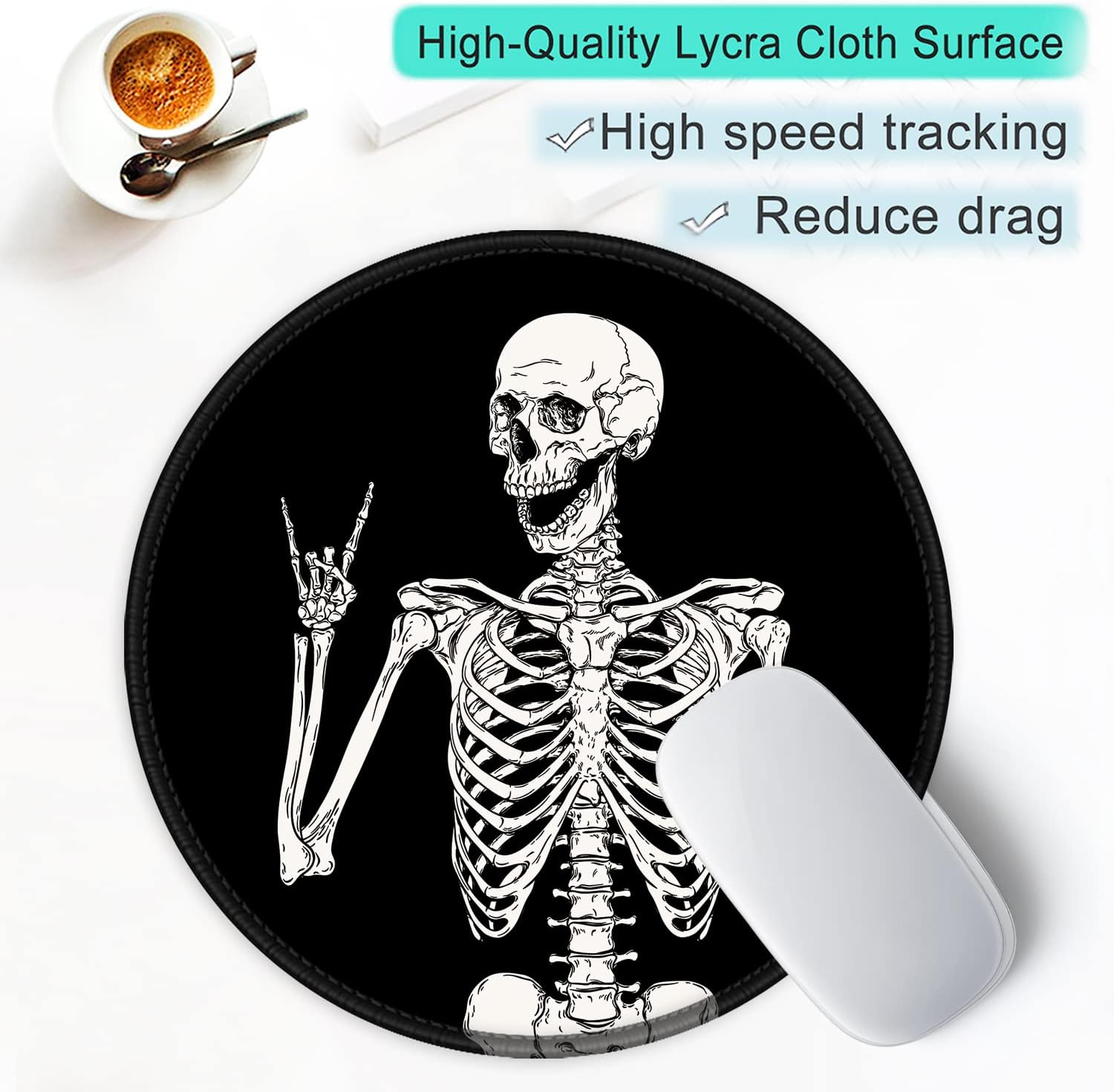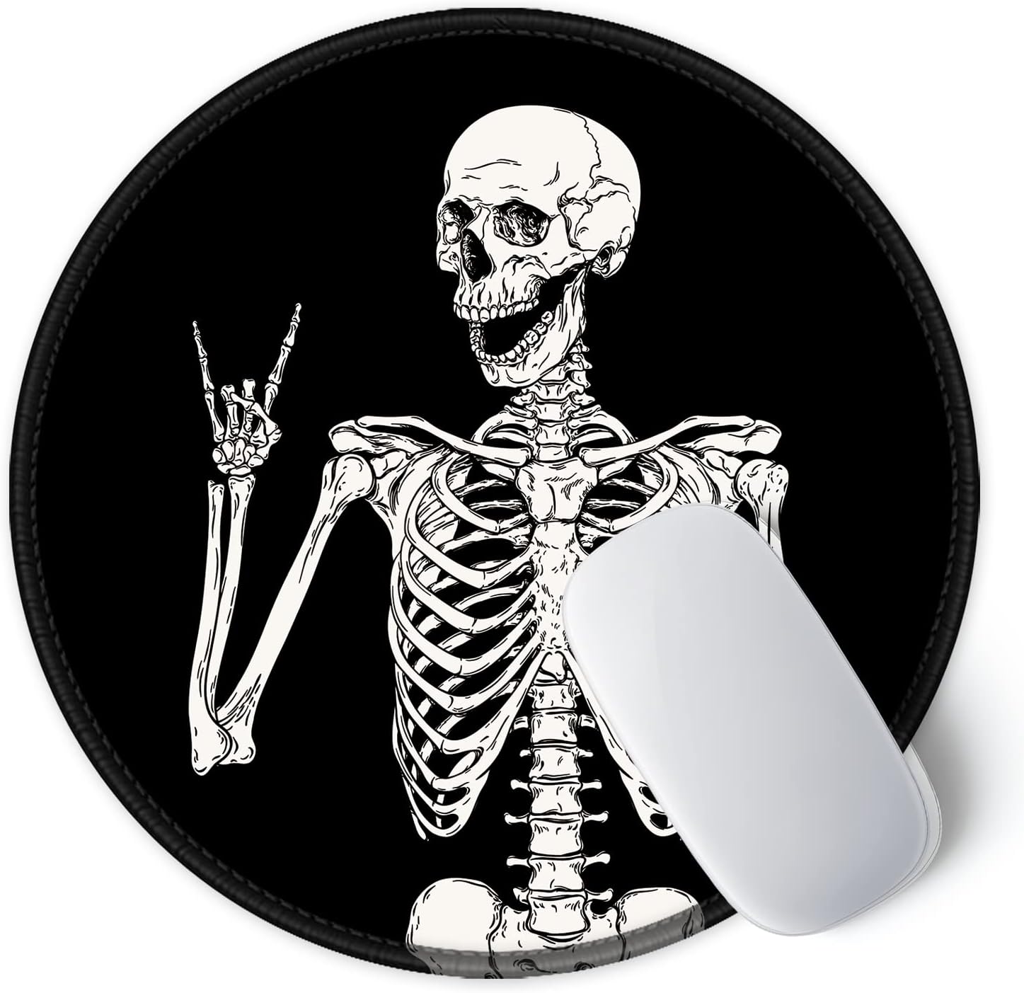 ITNRSIIET Round Mouse Pad with Stitched Edge Premium-Textured Waterproof Non-Slip Rubber Base Desktop Protection Mat Diameter 8.7 inches, Human Skeleton