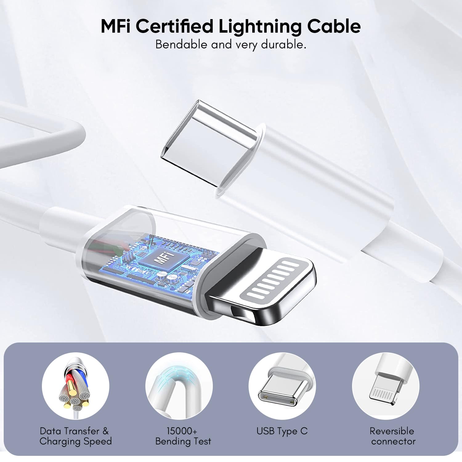 - Included Components : 2 x Dual USB C Port iPhone Charger Block, 2 x 10FT MFi Certified USB C to Lightning Cable