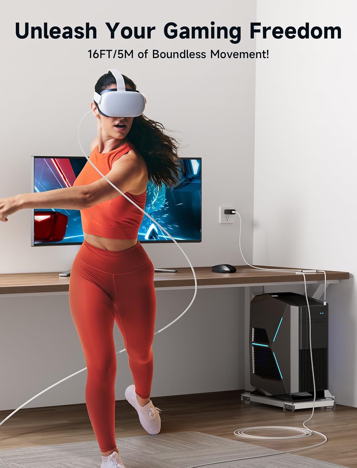 JSAUX Link Cable 16FT with Charging Compatible with Meta Quest 3S/Quest3/2/Pro Accessories【 Charging While Playing】 USB 3.0 High Speed Data Compatible with Oculus 3S/3/2/Pro, Pico 4, PC VR, Steam VR