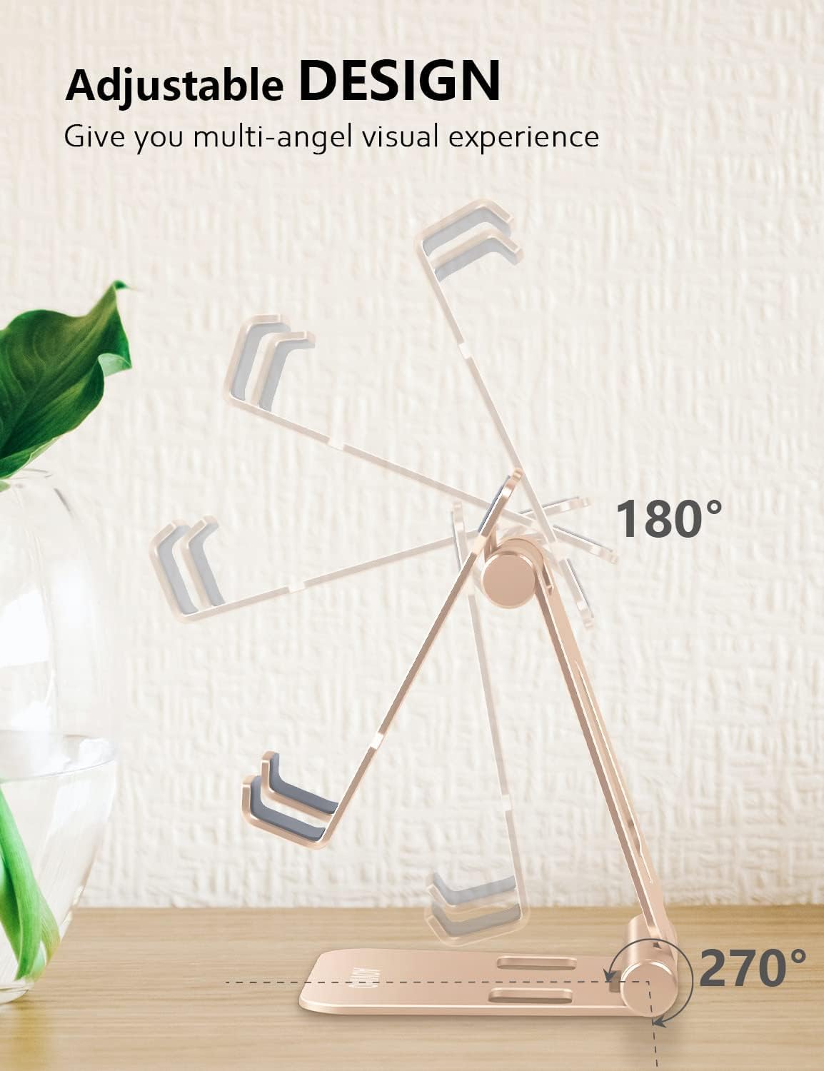- 【Adjustable & Foldable】The angel of cell phone holder can adjust up to 270 degrees to meet your viewing needs, relaxing your neck and giving you a multi - angel visual experience. Foldable design can save your space and easy to carry around. Whatever you want to use a phone stand, just remember to carry it.