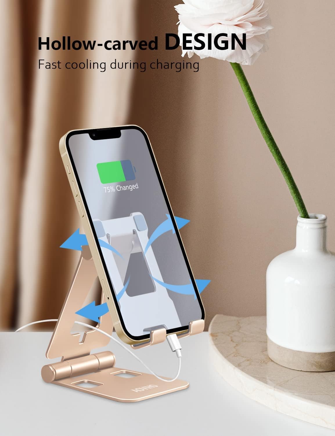Cell Phone Stand for Desk, Adjustable Desktop Phone Holder Stand, Foldable Moblie Phone Dock for iPhone 15 14 13 12 11 Pro Xs Max Xr X 8 7 6 5 5s SE Nintendo Switch All Phones,Gold
