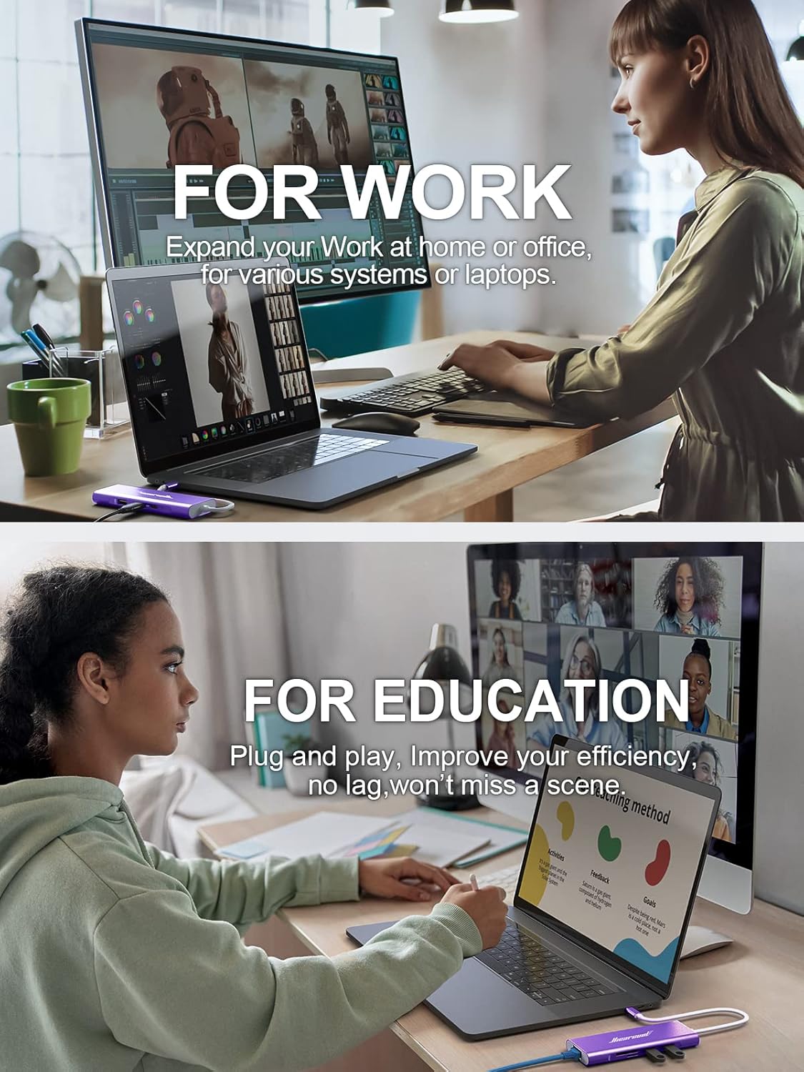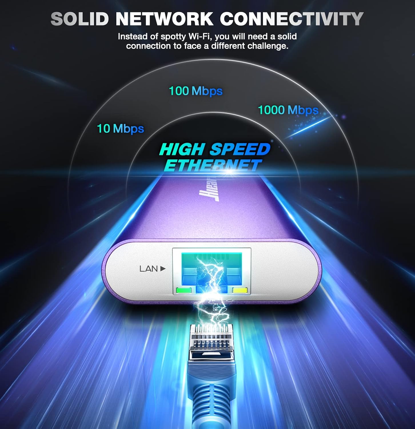 Hiearcool USB C Hub, USB-C Ethernet Dongle 4K@60Hz HDMI Multi-Port Adapter, USBC Docking Station Compatible for MacBook Dell HP Thunderbolt 3 4 Laptops-Purple