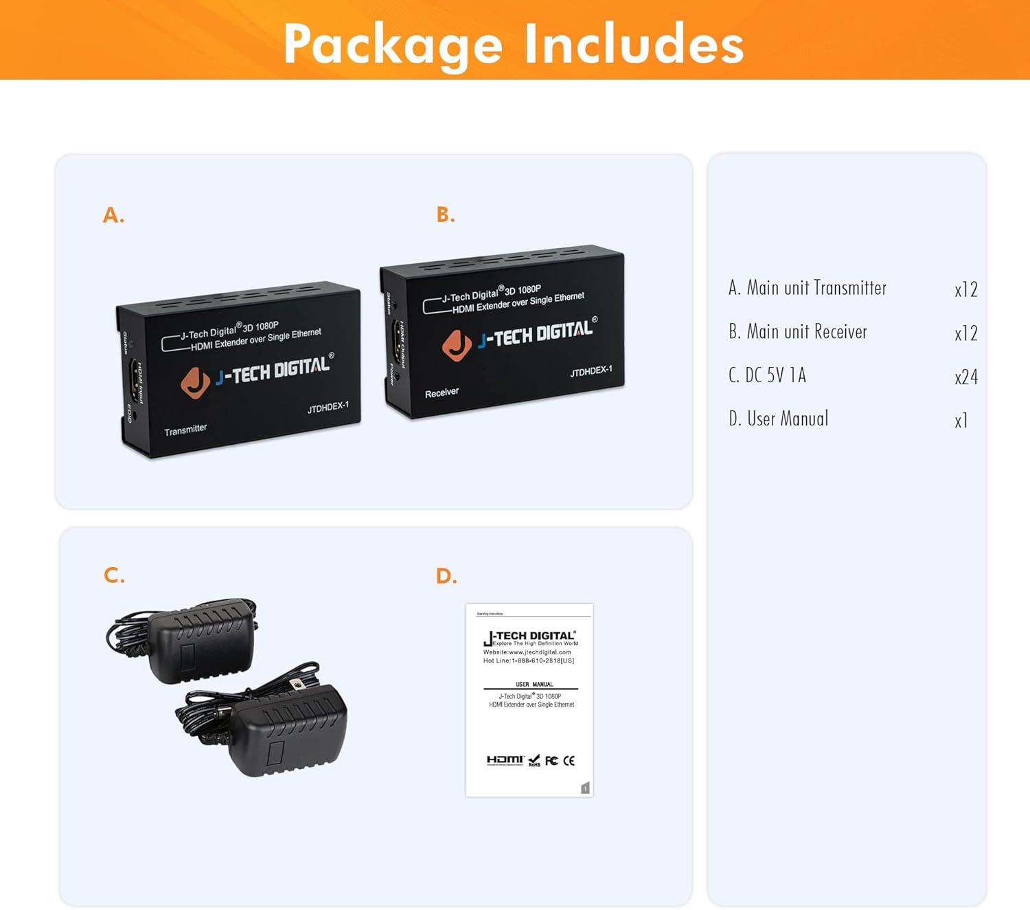 ![J-Tech Digital HDMI Extender 1080P 60Hz Over Single CAT 5e/6 Up to 200ft. | Deep Color, EDID Copy, Zero Signal Loss | Pack of 12 [JTDHDEX-1]](http://veltrixss.com/cdn/shop/files/61rZ5f-VMfL._AC_SL1500.jpg?v=1761708065&width=1445)