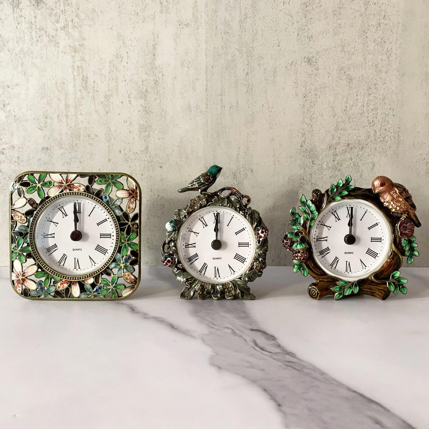- VINTAGE DESIGN & EXCELLENT CRAFT: Creative design of delicate flower and noble carvings gives these decorative mini table clock an elegant vintage appearance. Each piece of the clock frame is individually Hand-painted, will definitely add vintage and charm to your kitchen, living room, bathroom, or bedroom.