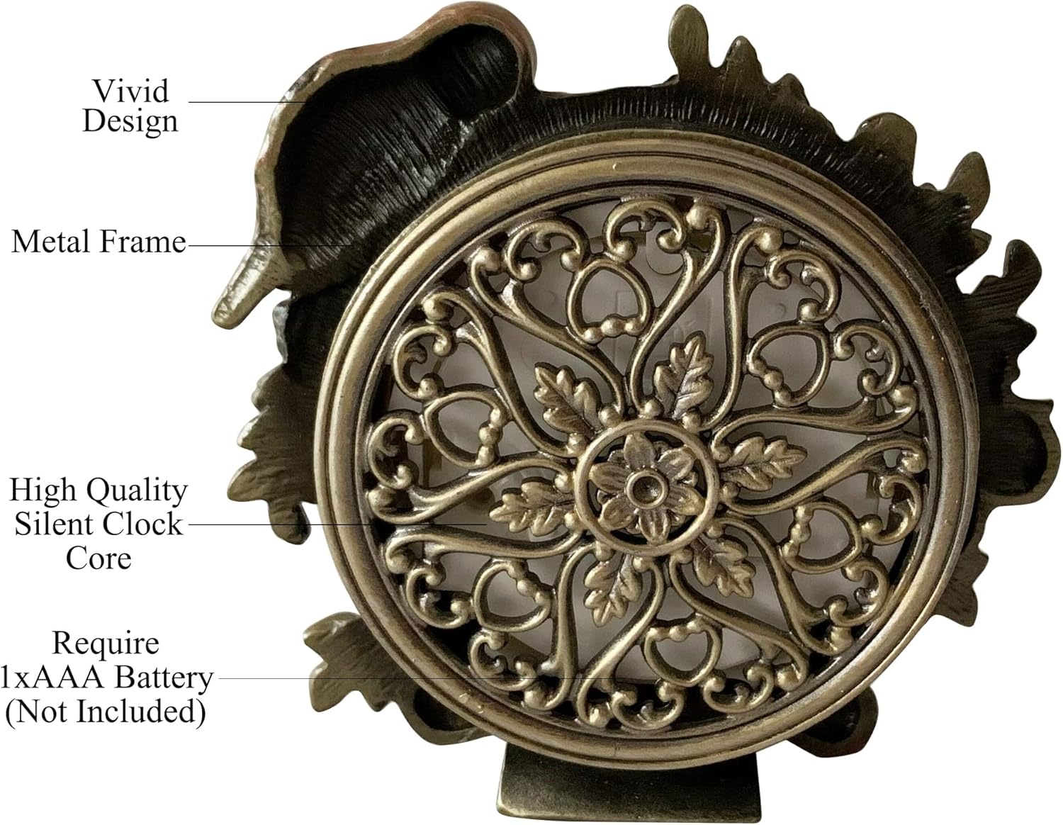 - MATERIAL: This vintage table clock is made from real metal and High quality silent clock core. The vintage table top clock is operated by a single AAA battery (not included).