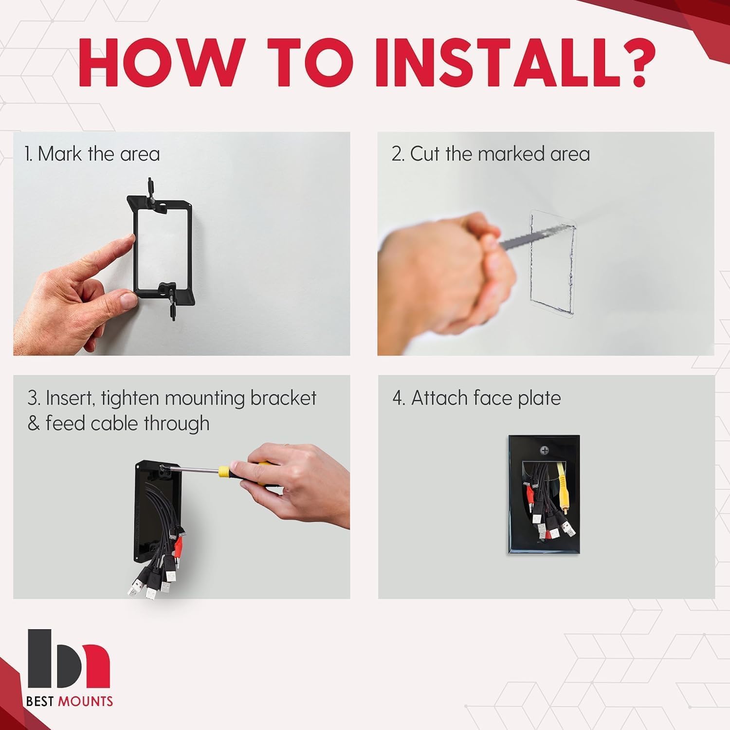 - No More Dangling Cables - Recessed low voltage wall cable pass through plates give your installation a finished appearance by hiding TV cords for wall mount TV but allow you the versatility of using the cable types of your choice, Just bring a drywall saw and screwdriver you're ready to hide those ugly dangling cables