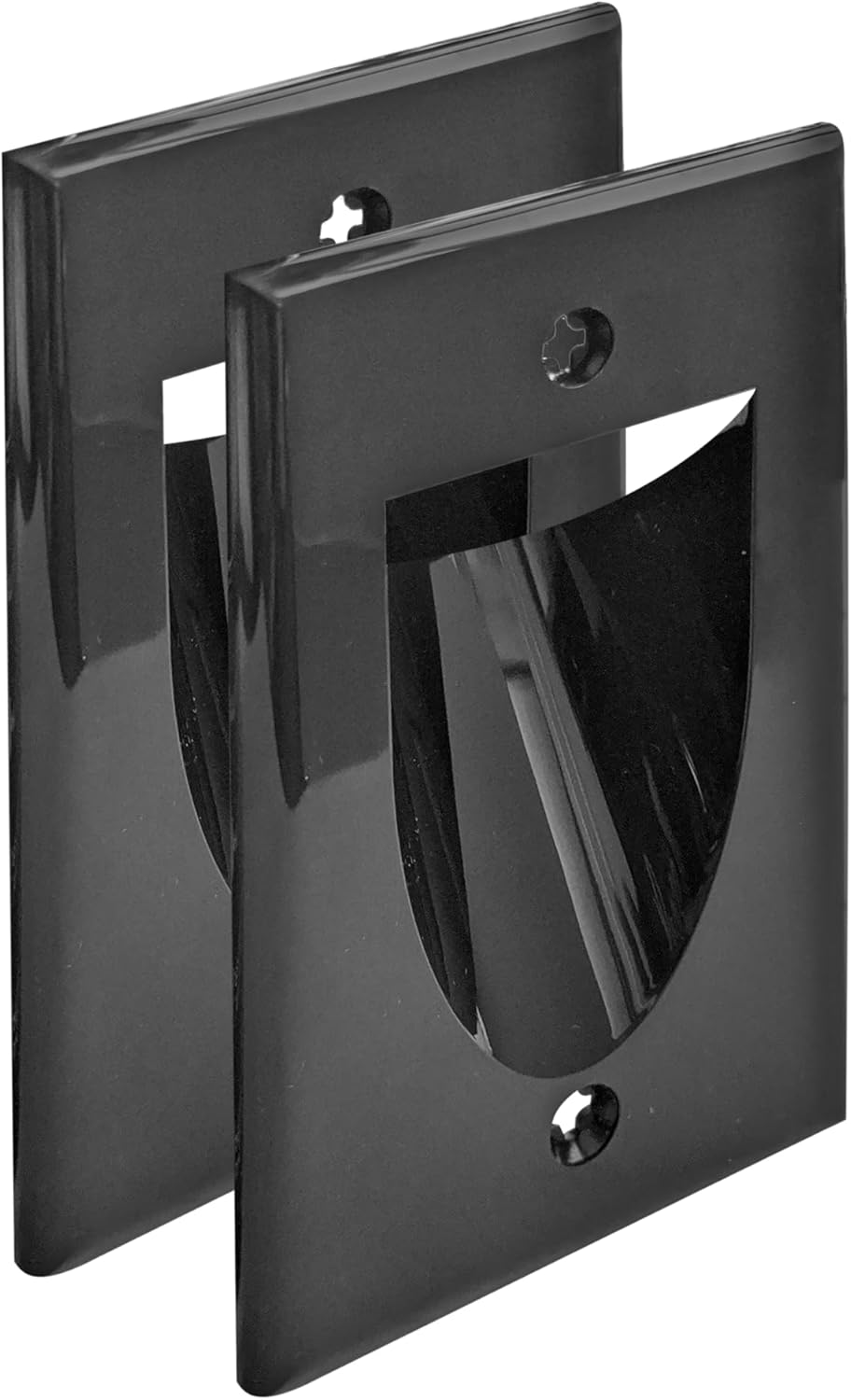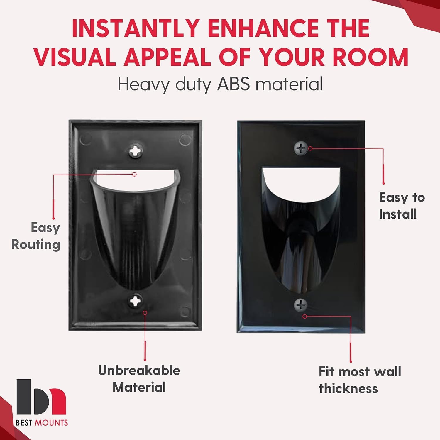 BestMounts - 2 Pack Inner Nose Behind Wall Cable Management TV Cord Hider for Wall Mounted TV - Single Gang Low Voltage Recessed Wall Plates Cable Pass Through for Wires, HDTV, HDMI (Black)
