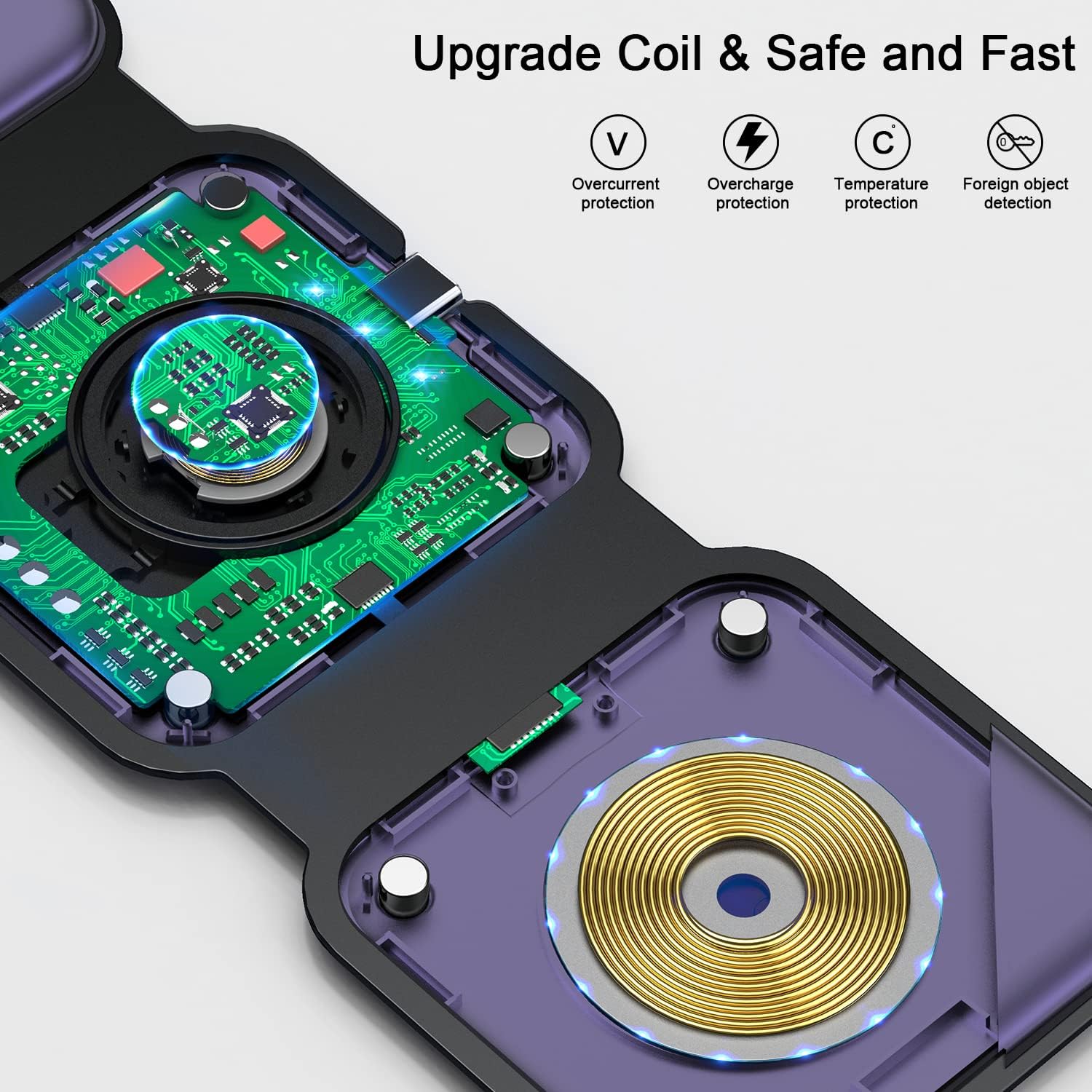 - Pay Attention to Family Health: Many other phone wireless charging station do not take anti-electromagnetic measures, and internal radiation will spread, causing harm to the human body. This folding charger uses a professional magnetic isolation sheet inside, no radiation leakage, the elderly and children can use it with no worry. This wireless charging station for apple products strive to protect the safety of you and your family.
