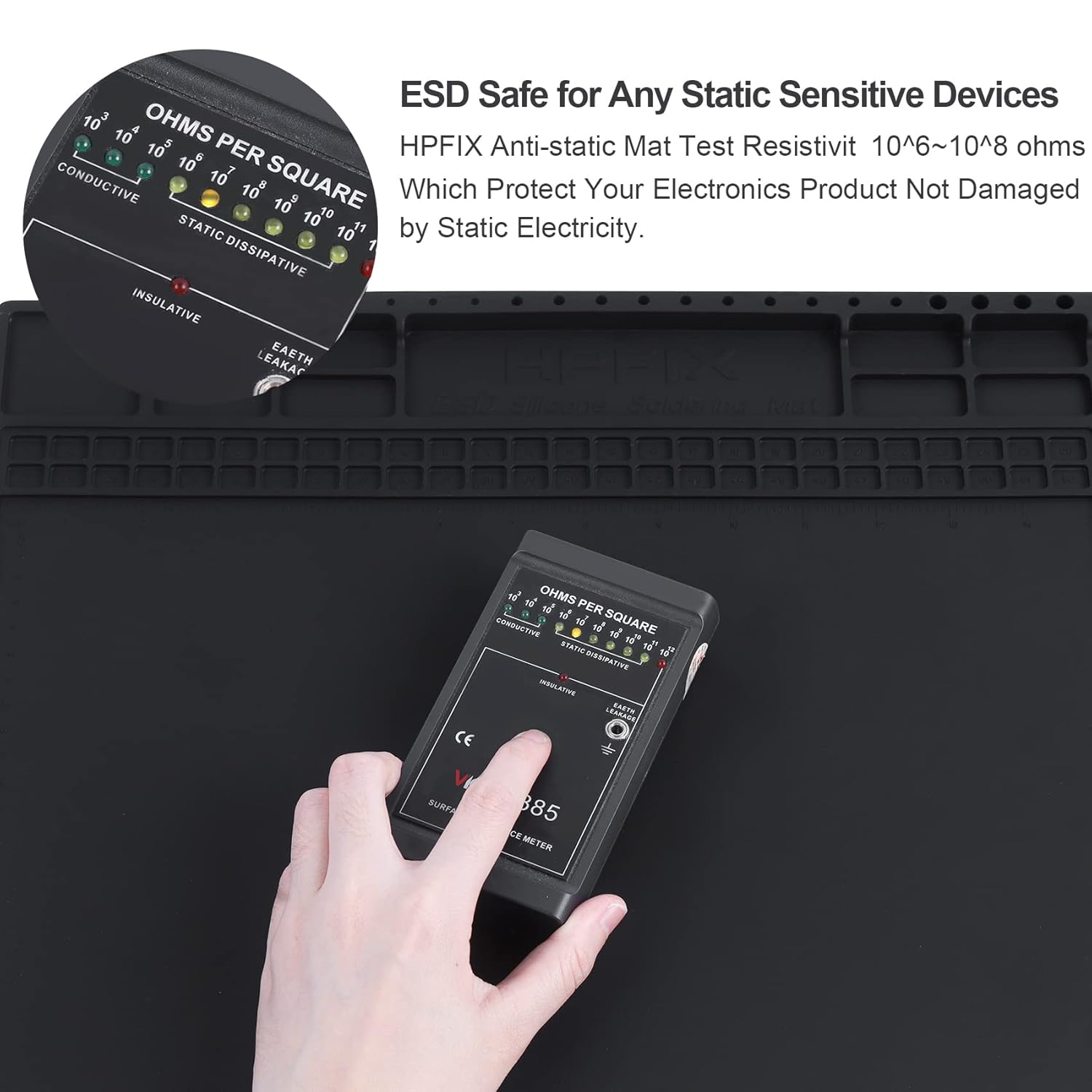 - 🥇【ESD Safe For Electronics】- This is a high quality ESD soldering mat designed for sensitive electronics assemble and repair that require anti static electricity. We use professional anti-static silicone material to make the mat, The resistivity value is 10^6 - 10^8 ohms which is best protecting sensitive electronic.