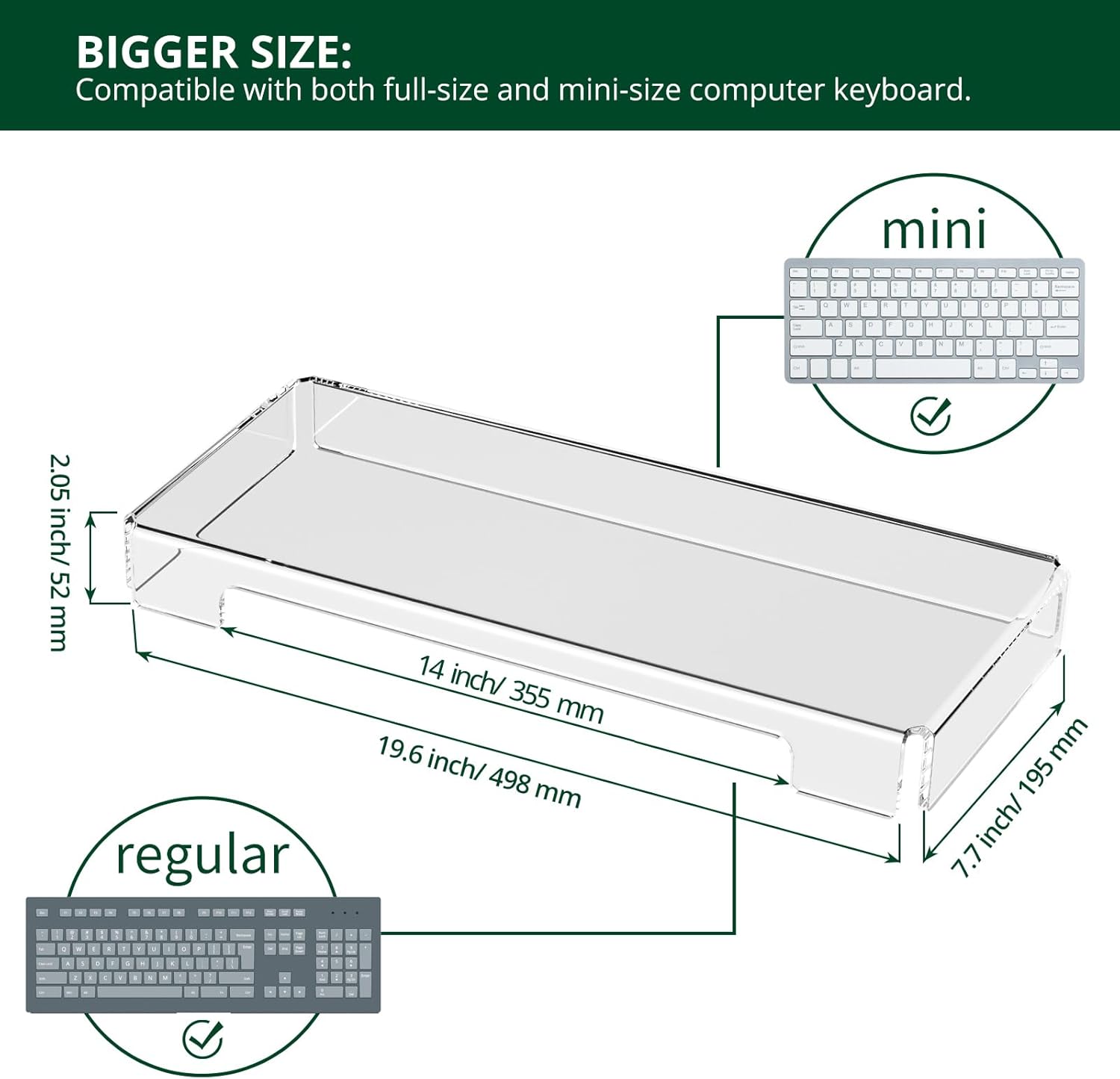 - Measurements: with 19.5''L*7.7''W*2''H, the acrylic keyboard protector fits most standard flat cord or cordless computer keyboard. It's wide enough to cover a mechanical gaming keyboard when you walk away and go to the bathroom. No more cats locking the keyboard, let him/her sit on the acrylic keyboard cover.