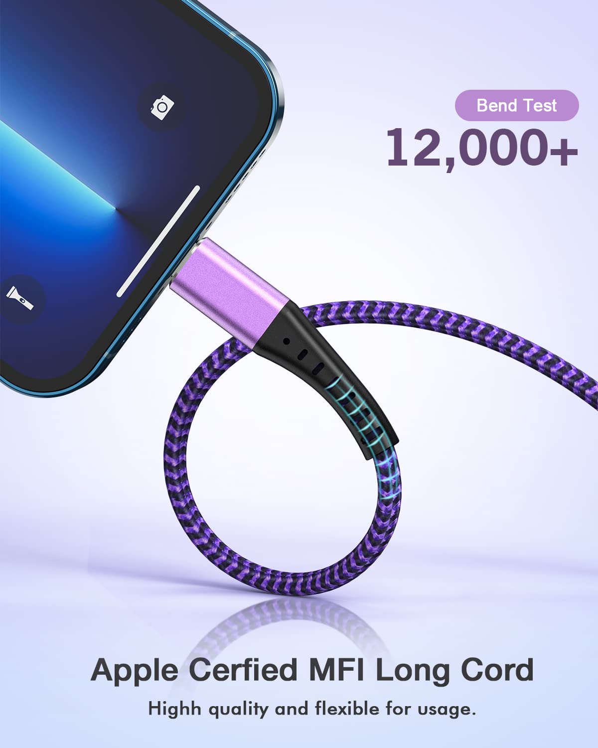 - 【2 Pack 10FT/3M iPhone Charger Cable】Using High Quality Lightning Cable with Copper core wire, this iPhone Data Sync Cable can charge and sync data up to 480Mbps (30MB/S) speed, ensuring efficient transfer. And the extra-long 6 Foot iPhone Charger Cable allows us to move anywhere and keep it charged.
