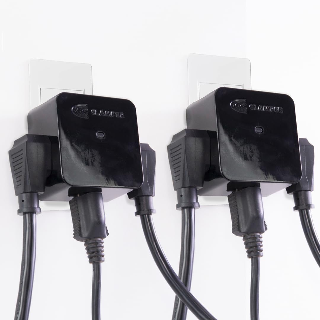 Clamper 3-Outlet Surge Protector 1800 Joules, 1875W, for TV, PC, Xbox, PS5, Refrigerators and Other Appliances (Compact Wall Surge Protector), iCLAMPER Power 3, 2-Pack Black