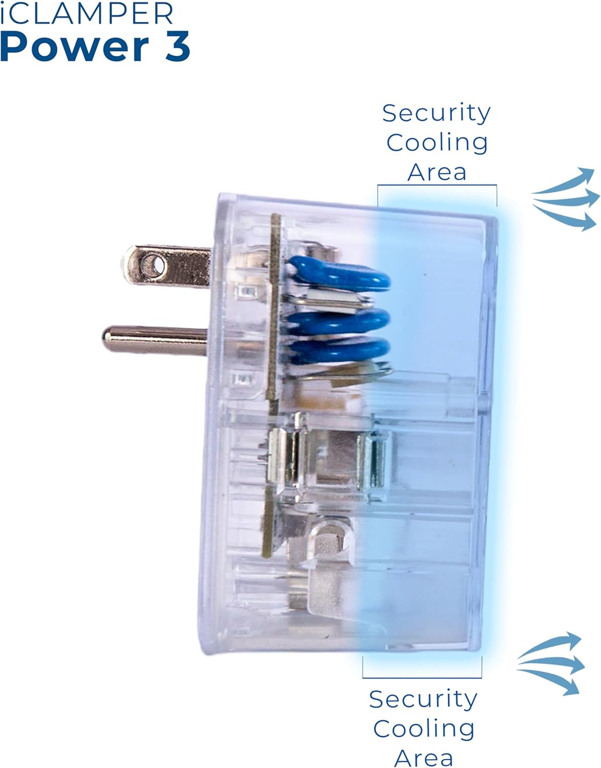 Clamper 3-Outlet Surge Protector 1800 Joules, 1875W, for TV, PC, Xbox, PS5, Refrigerators and Other Appliances (Compact Wall Surge Protector), iCLAMPER Power 3, 2-Pack Clear
