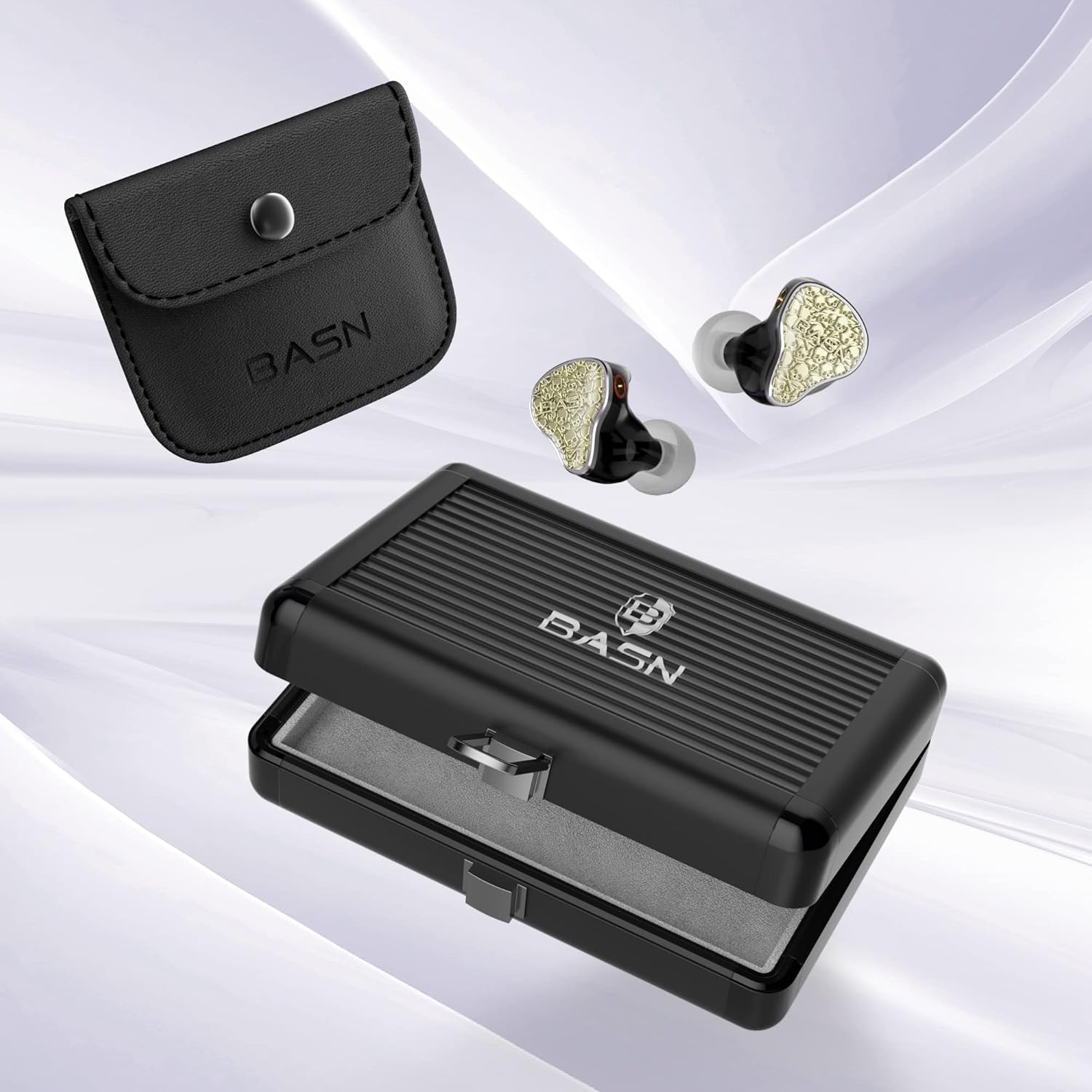 BASN Bmaster5 in Ear Monitors, 1DLC Diaphragm+4BA 5 Drivers IEM Earphones with Silver-Plated OFC Cable, Noise Isolation Wired Earbuds for Musicians (Starlight Gold)