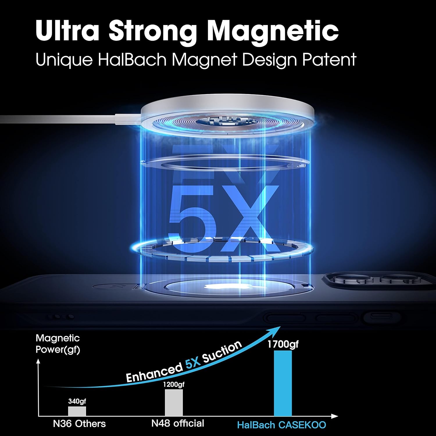 - [Ultra Magnetism- 25W Upgrade] The MagicStand Case is compatible with all MagSafe accessories and third-party Qi-certified wireless chargers. It provides a built-in 48 pcs magnets ring structure, explicitly arranged with CASEKOO's MagPrime array technology, allowing for 2 TIMES STRONGER magnetism than the Official's. MagPrime ensures almost 0% POWER LOSS during wireless charging, making charging FASTER YET SAFER