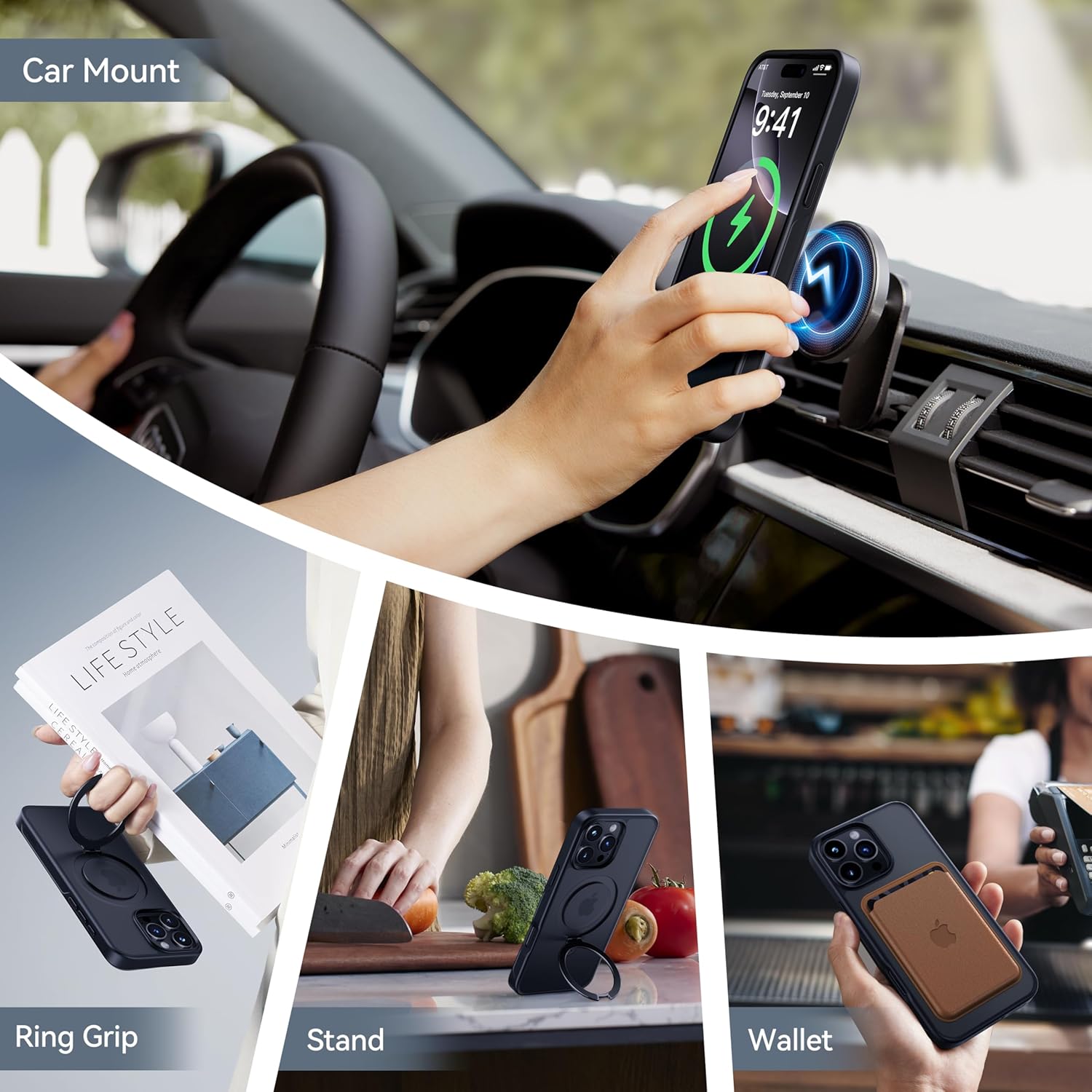 - [16FT Military Grade Protection] Based on 5000+ extreme drop resistance tests, the MagicStand case's durability and sturdiness surpass most ordinary phone cases. It passed the Military Grade test by the (MIL-STD-810H 516.8). The shockproof polycarbonate back and airpad cushioning enhance protection against daily drops and bumps. A 2.5mm raised camera border prevents lens scratches, while a 1.24mm bezel safeguards your screen