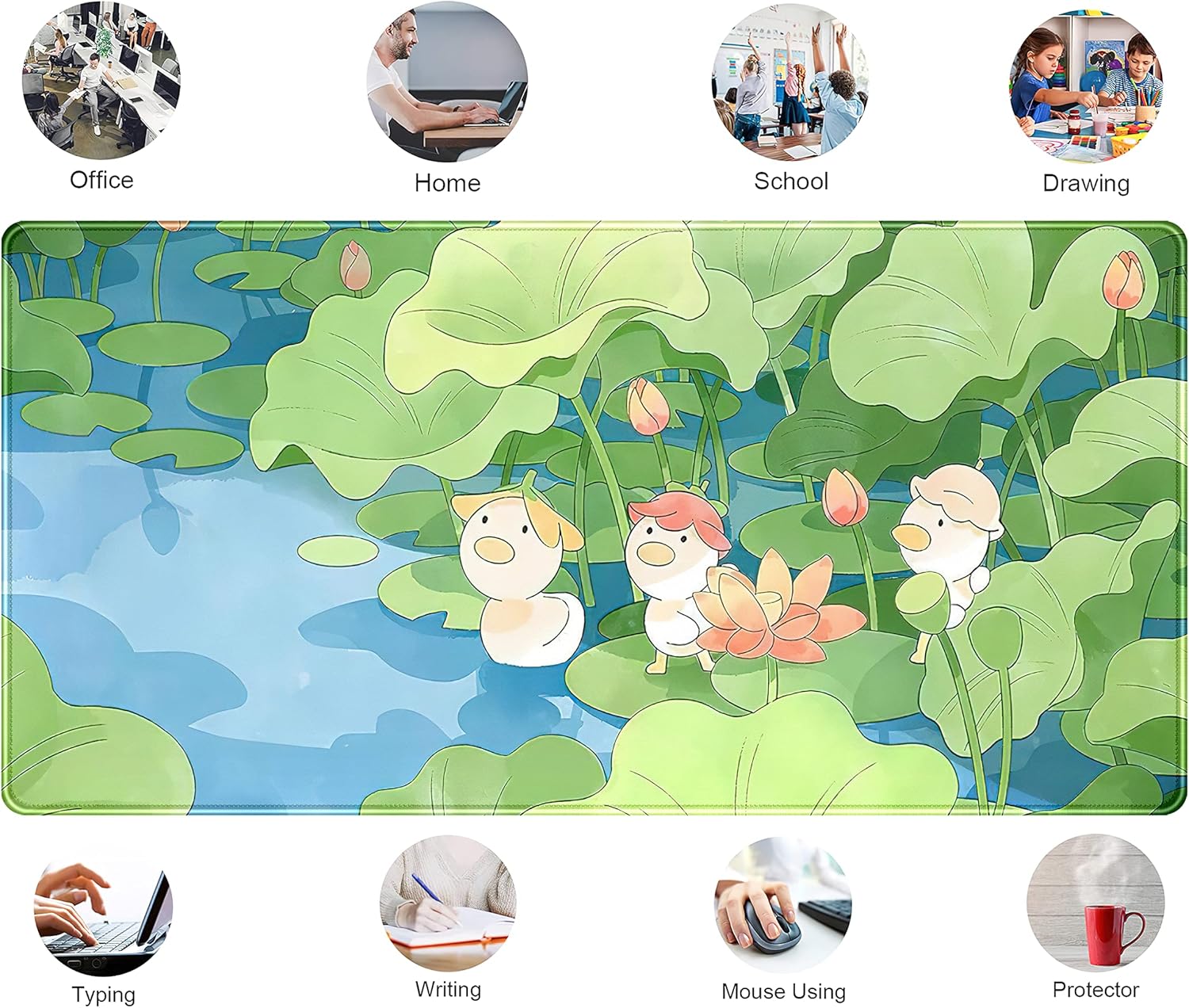 Green Cute Anime Desk Mat Kawaii Cartoon Ducks Gaming Mouse Pad XXL Large Anime Girl Gamer Mousepad Women Office Decor Desk Pad Aesthetic Lotus Leaf Laptop Keyboard Pad Computer Mat 31.5x15.75 in