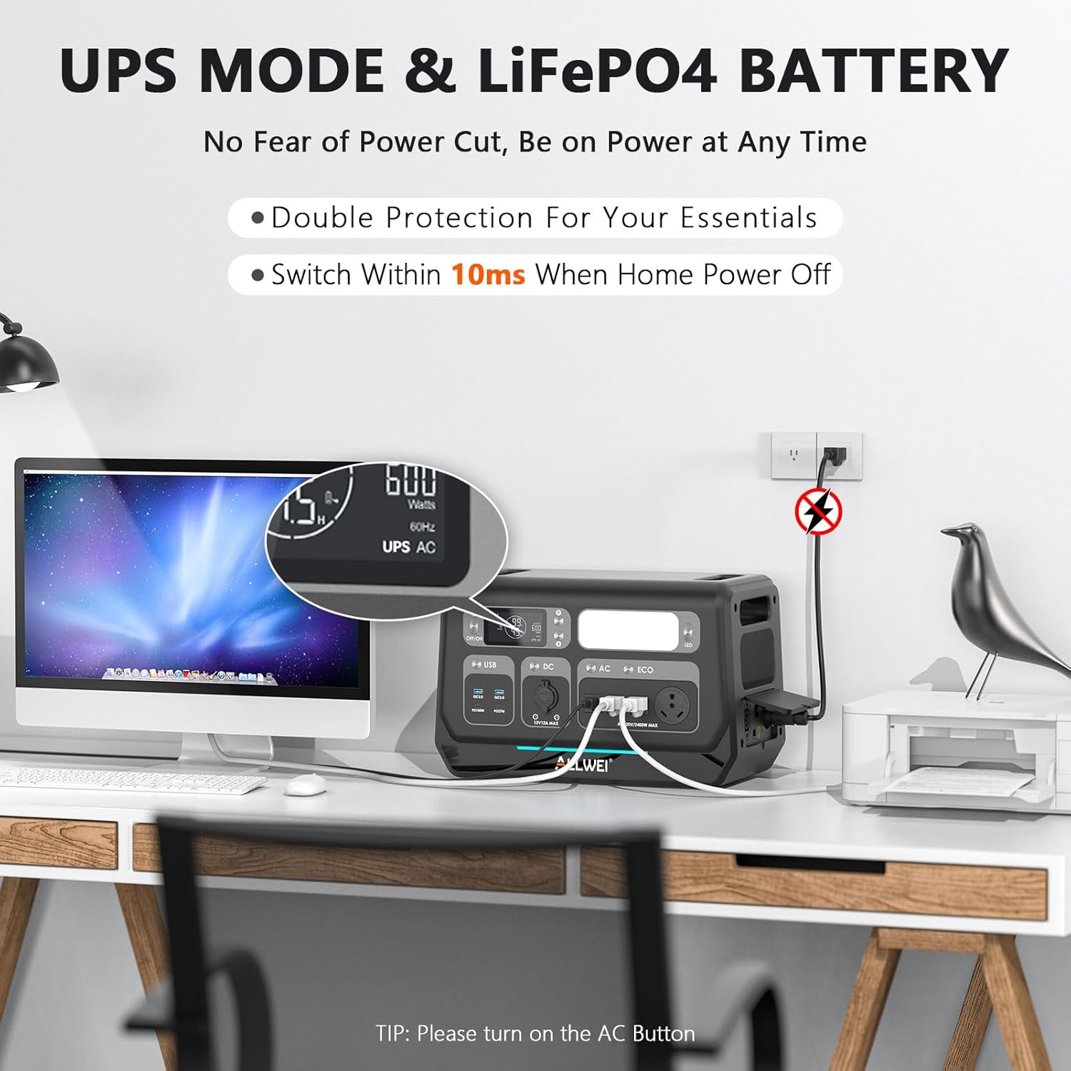 - 【11 Ports in 1】The PPS2400-3 boasts 2400W output and 11 outlets to handle almost anything you plug in. With a tap on the ALLWEI App, you can give it a boost to 2400W for your higher needs.