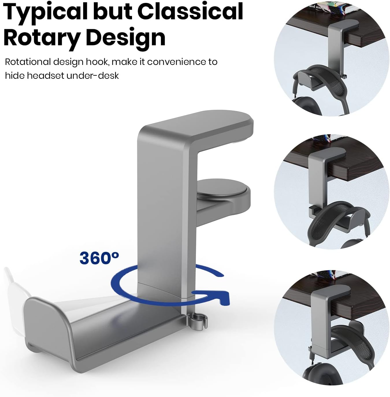 - 【Rotating Adjustable Headphone Arm】Experience effortless access to your headphones with 360-degree swivel design. The gaming headset stand makes it easy to get your desired directions, even tucking them neatly under your desk when not in use.