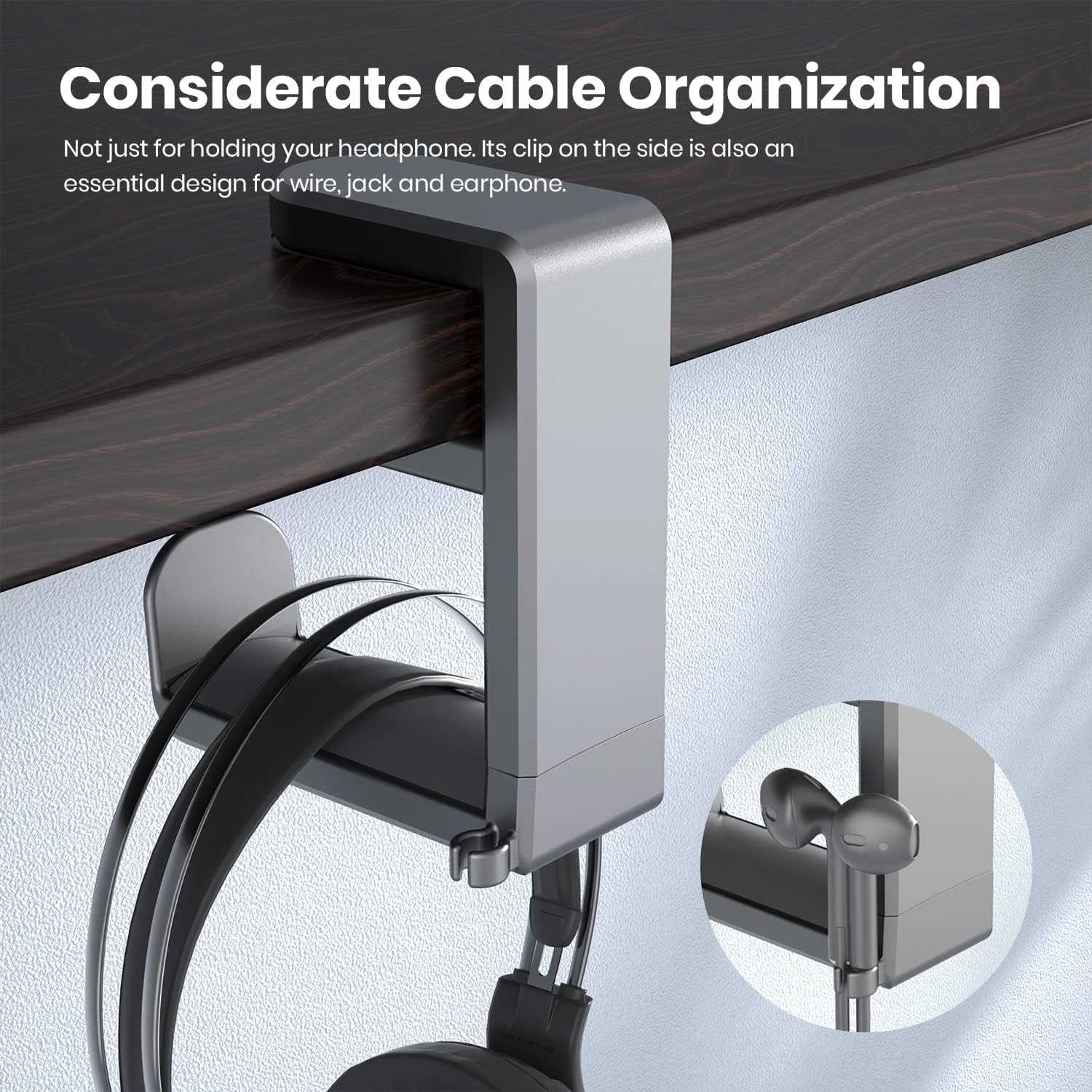 - 【Built in Cable Organizer】The headphone hanger features cable clip to hold your headset's cable in place. It's the perfect desk accessory to ensure your gaming setup and office desk remain tidy and organized.
