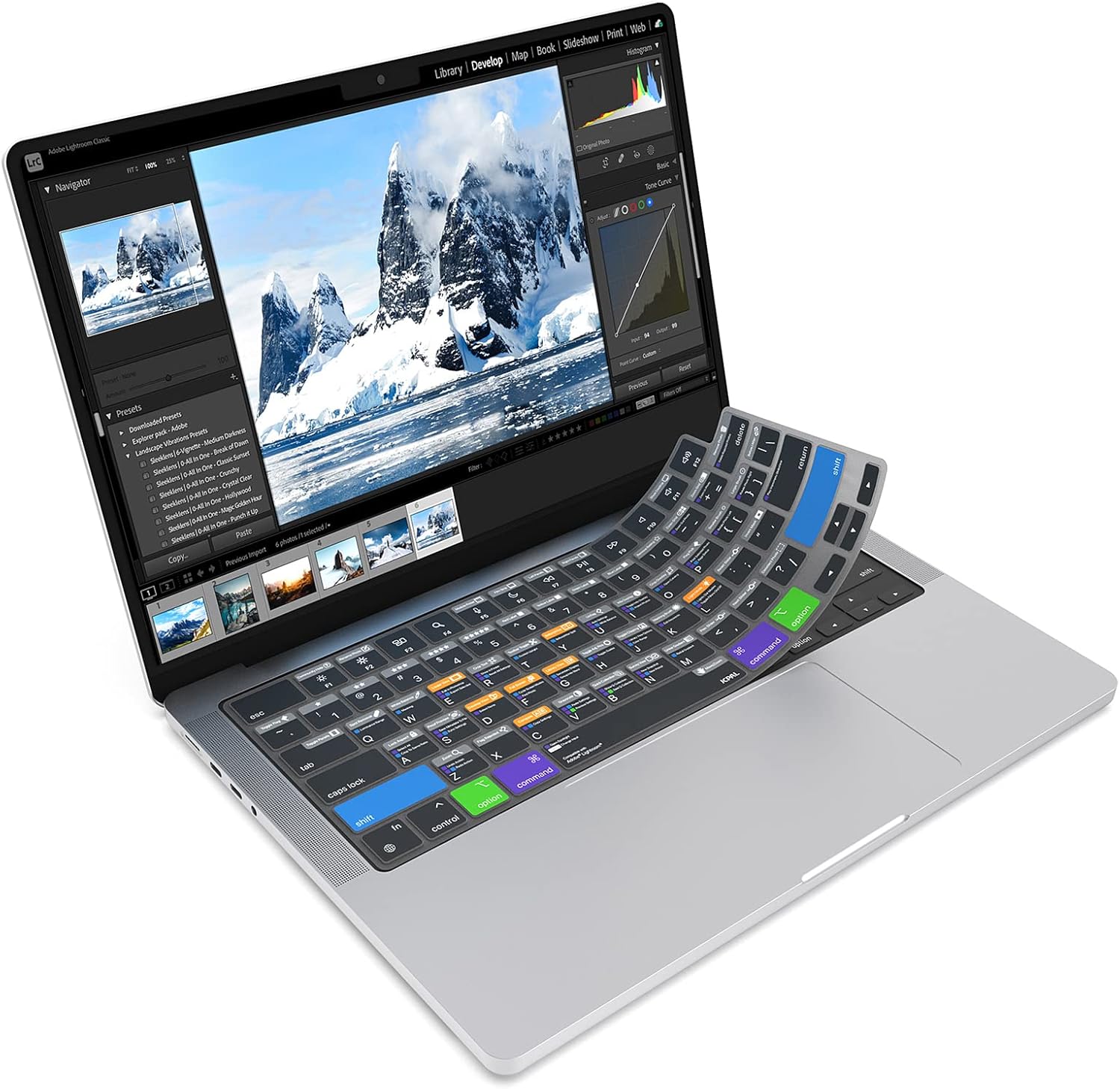 JCPal Adobe Lightroom Shortcut Guide Keyboard Cover for Apple MacBook Pro 14 inch and MacBook Pro 16 inch (M1-M4 Models) and MacBook Air 13 inch and MacBook Air 15 inch (M2-M4 Models) (US-Layout)