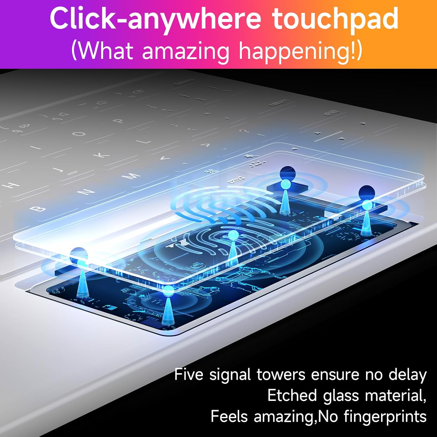 - 🖱️Precision Trackpad:The newest upgraded full-area click trackpad with laser etching AG Glass + linear motor!Smooth gestures (scroll/swipe/tap),zero lag & easy-to-clean surface!✨ Tip: Enable "Tap to Click" in Settings > General > Trackpad.