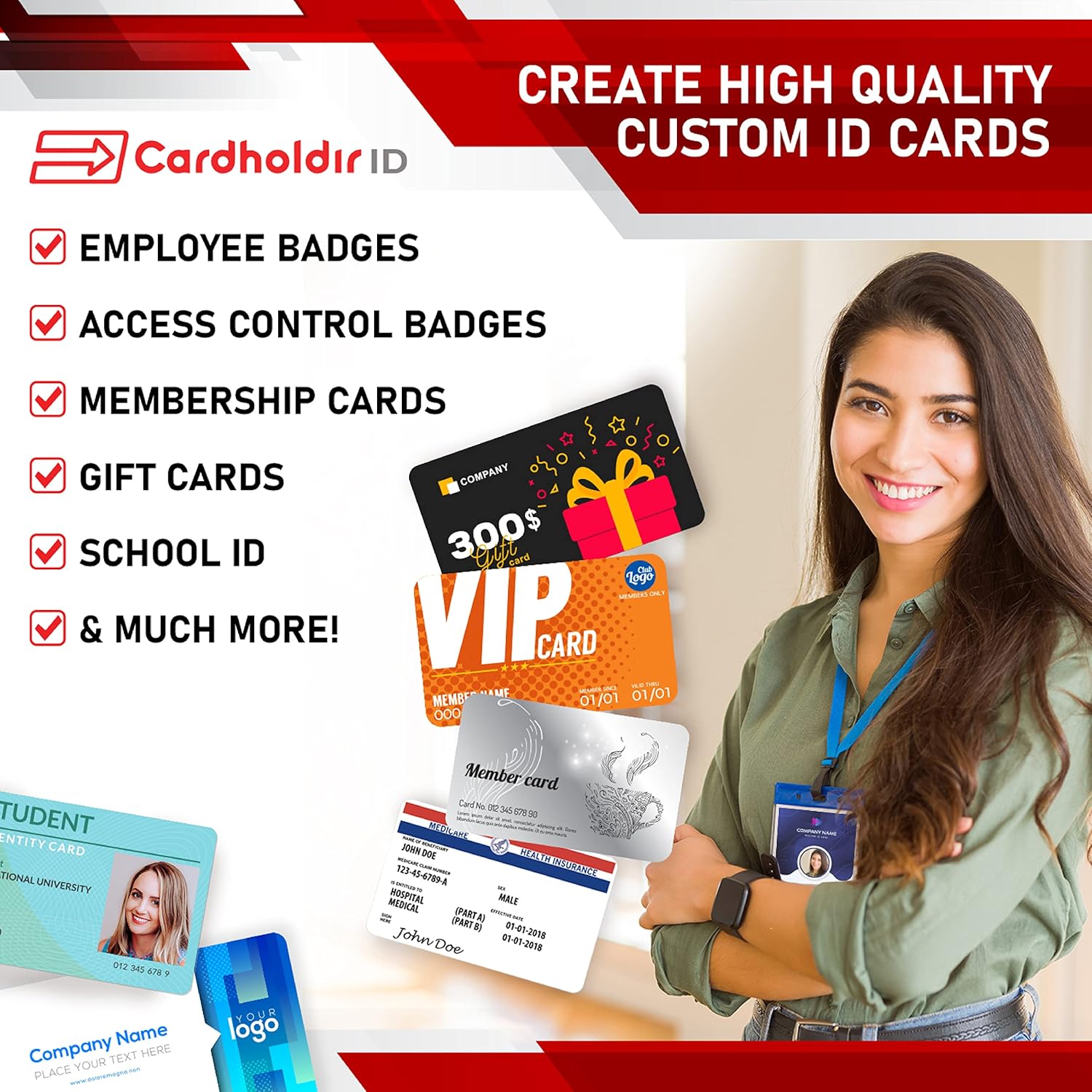 - Cardholdir ID Software- Cardholdir ID software is an easy-to-use, full-featured ID card software for use with your MAC or PC. Our software is a one time purchase with no reccurring charges. Easily create employee ID cards, access control cards, visitor passes and more. Easily drag and drop any standard image files into our software and start printing badges in only minutes.
