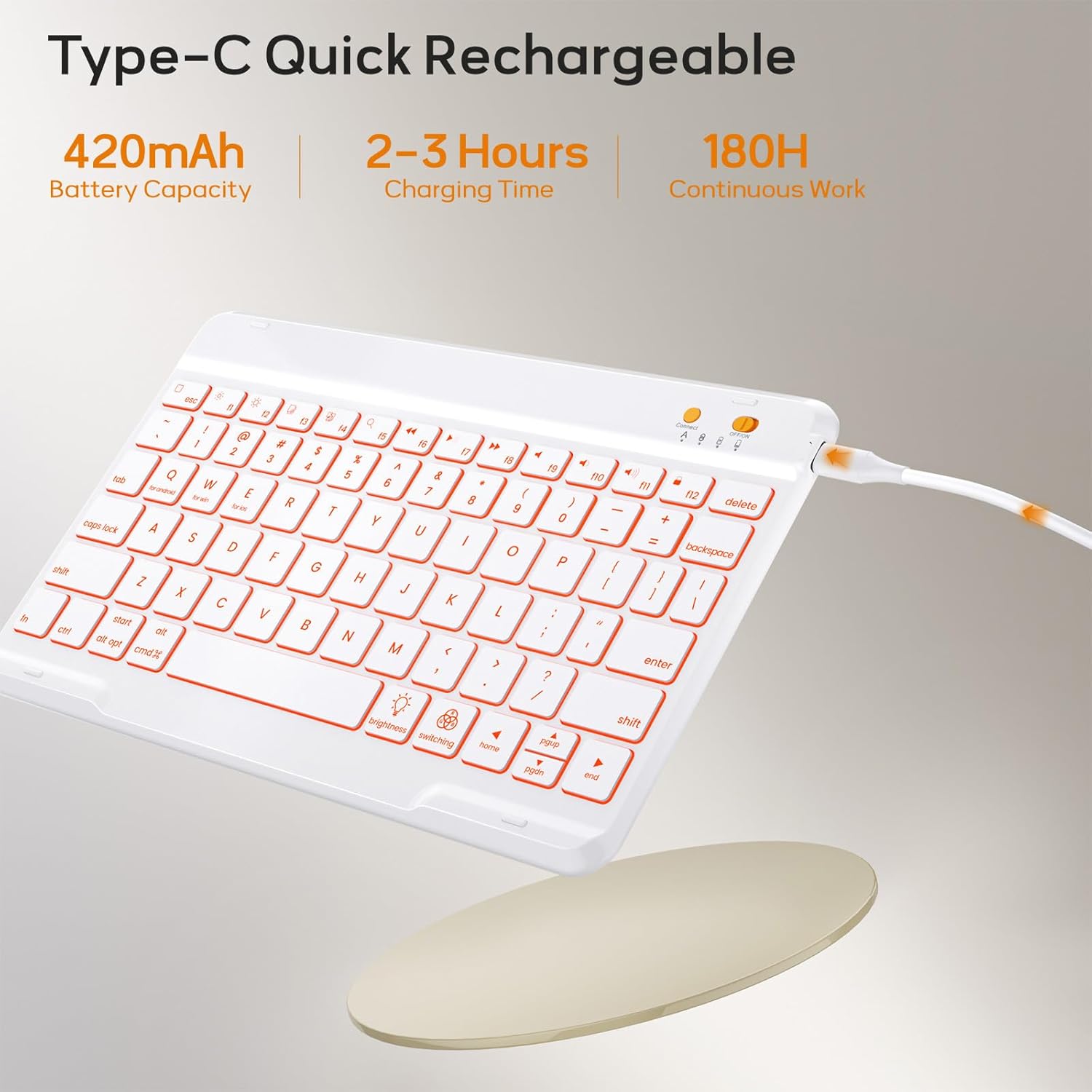 - ✅【Rechargeable Backlit Keyboard】7-color backlit and wireless keyboard allows you to type comfortably even in low light conditions. Use a USB-C charging cable to ensure long-term use.Shortcut keys make it easier for you to use your device.