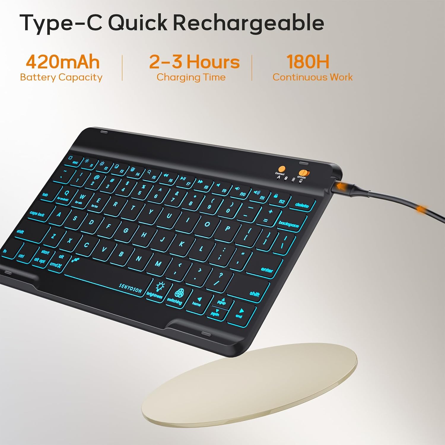 - ✅【Rechargeable Backlit Keyboard】7-color backlit and wireless keyboard allows you to type comfortably even in low light conditions. Use a USB-C charging cable to ensure long-term use.Shortcut keys make it easier for you to use your device.