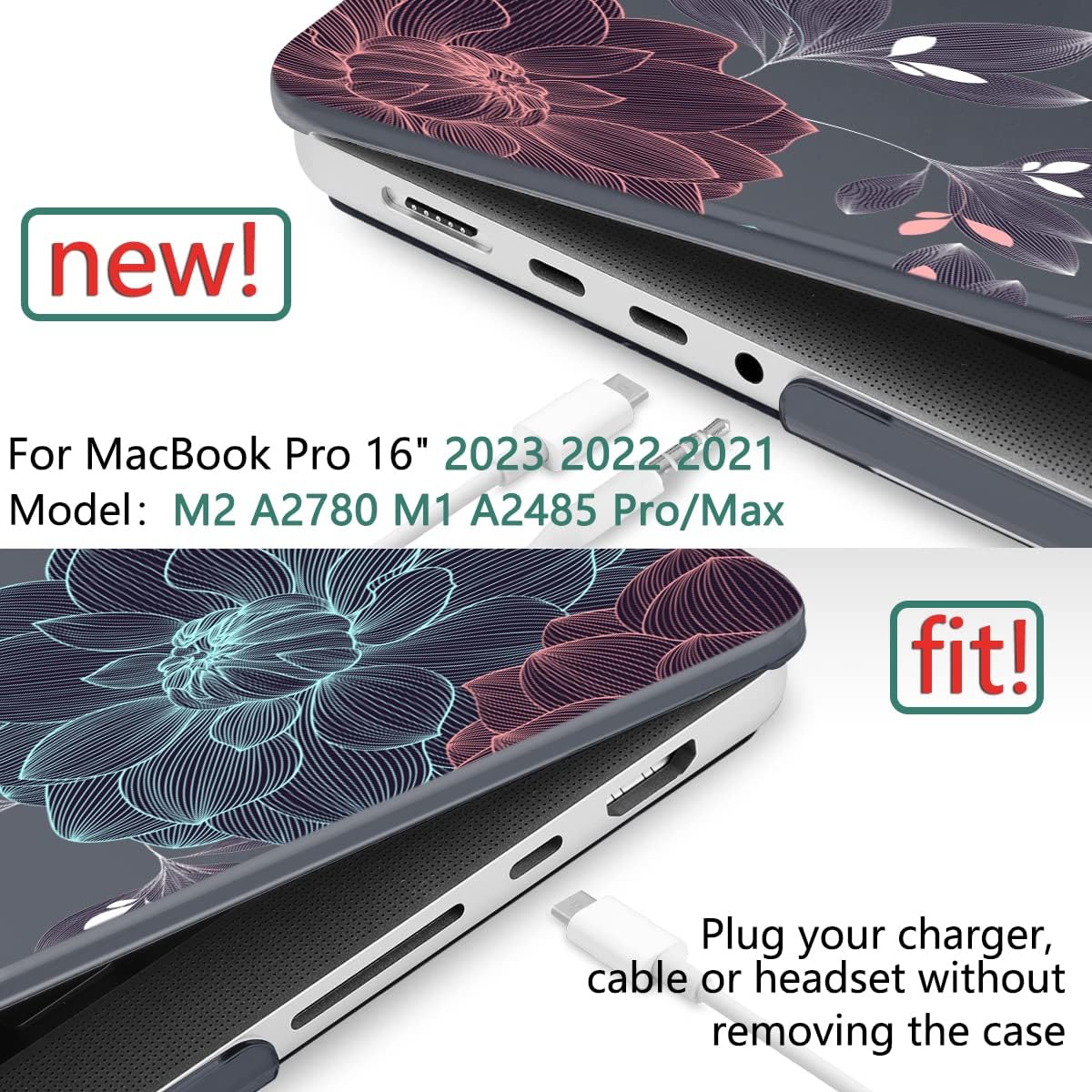 DONGKE for M4 MacBook Pro 16 Inch Case 2024 2023 2021 A3403 A3186 M3 A2991 M2 A2780 M1 A2485 Pro/Max Chip, Plastic Hard Shell Case & Keyboard Cover for Mac Pro 16 with Touch ID, Dahlia Flowers