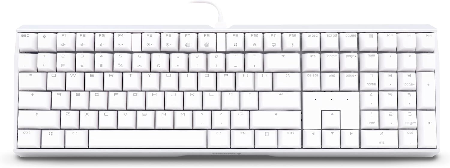 Cherry MX 3.0 S Wired Mechanical Gaming Keyboard. Aluminum Housing Built for Gamers w/MX Red Switches. RGB Backlit Color Display Over 16m Colors. from The Makers of MX. Full Size. Pure White.