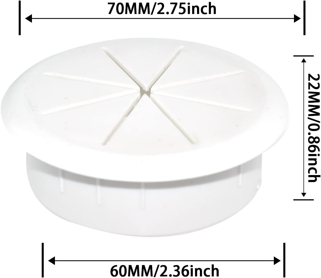 - SIZE: The grommet bottom diameter is 60mm / 2-3/8", top diameter is 70mm, total height is 22mm and installation height is 19mm, and can pass through any cable up to 1.5 inches (diameter).