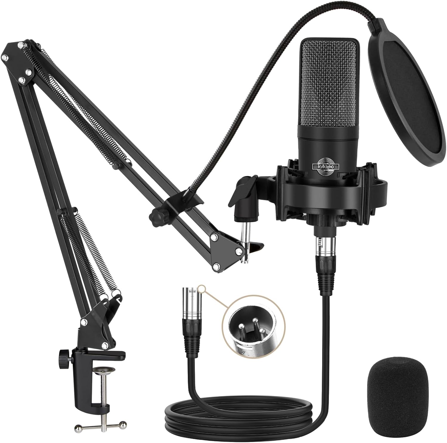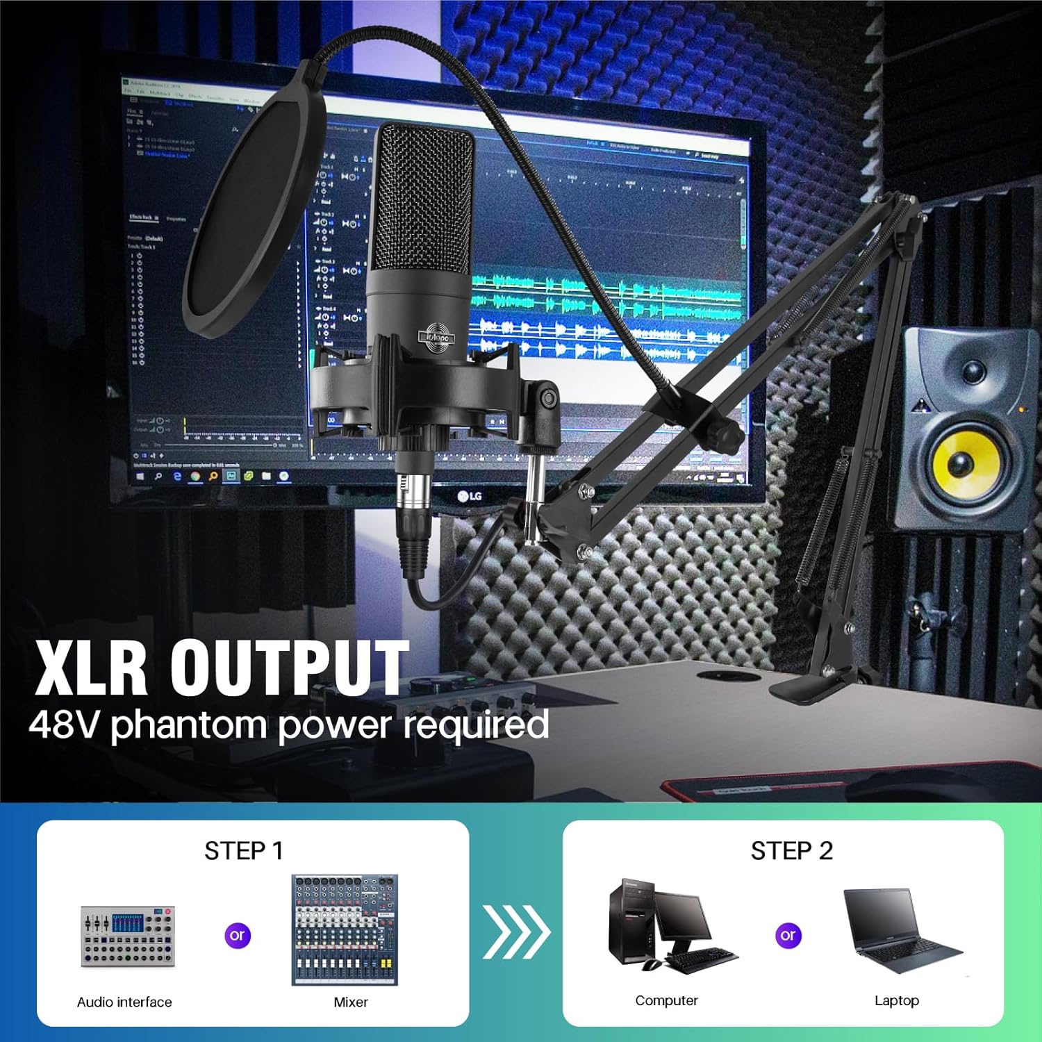 Condenser Microphone XLR Professional Studio Recording Microphone Kit for PC Computer with Boom Arm,Cardioid XLR Podcast Microphone for Streaming,Gaming,Singing,Voice Over,ASMR,YouTube