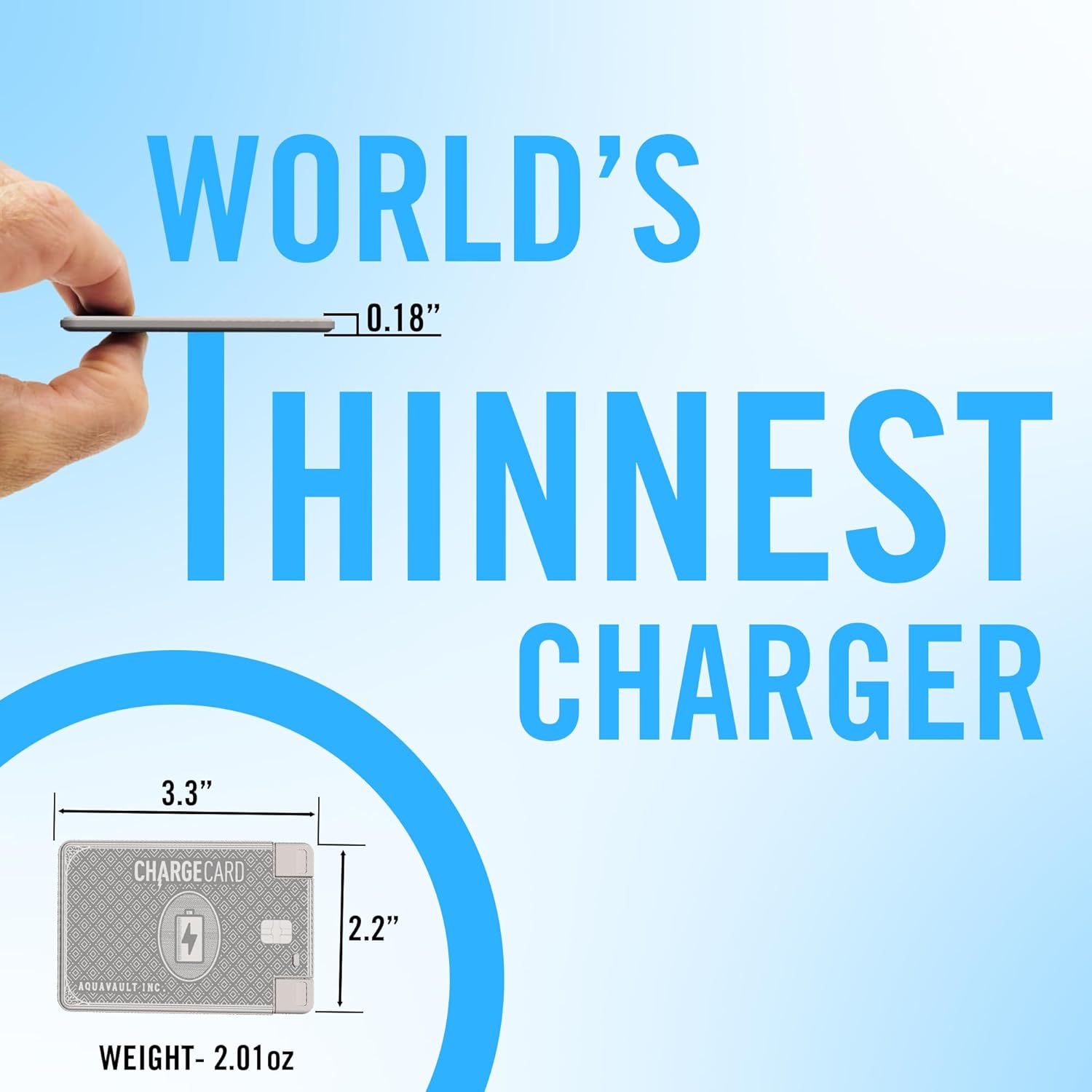 - EMERGENCY POWER, ALWAYS IN YOUR WALLET: No more dead phone anxiety. The ultra-slim ChargeCard fits in any wallet or cardholder, so you're never caught without a charger. Keep it on you 24/7—without even thinking about it