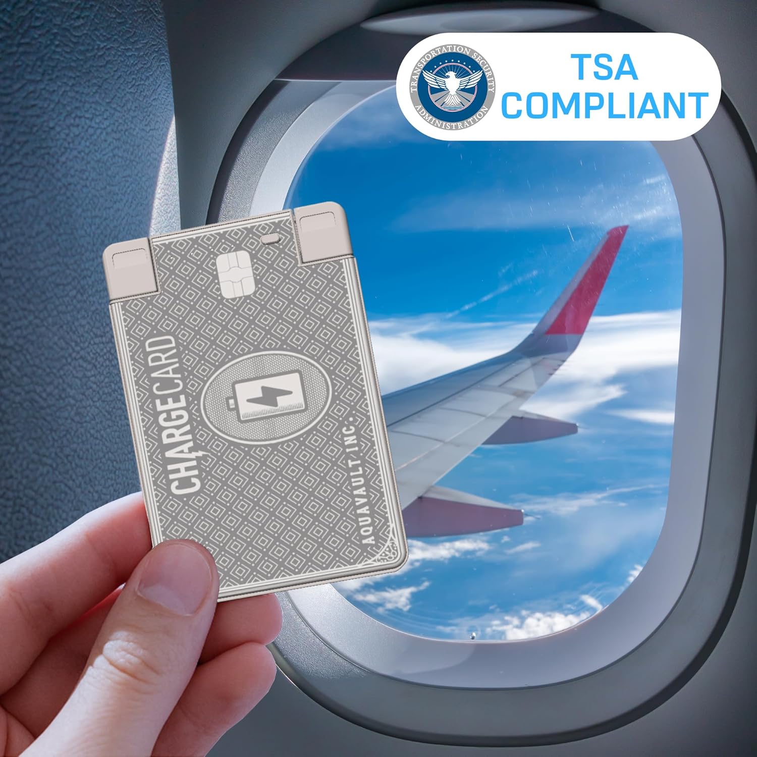 - AIR TRAVEL READY – KEEP IT WITH YOU: Easily slip it into your carry-on or pocket—ChargeCard meets airline safety guidelines and can be brought aboard flights with no restrictions. Ultra Thin and Lightweight at only 3.3" x 2.2" x 0.18" (2.1oz)