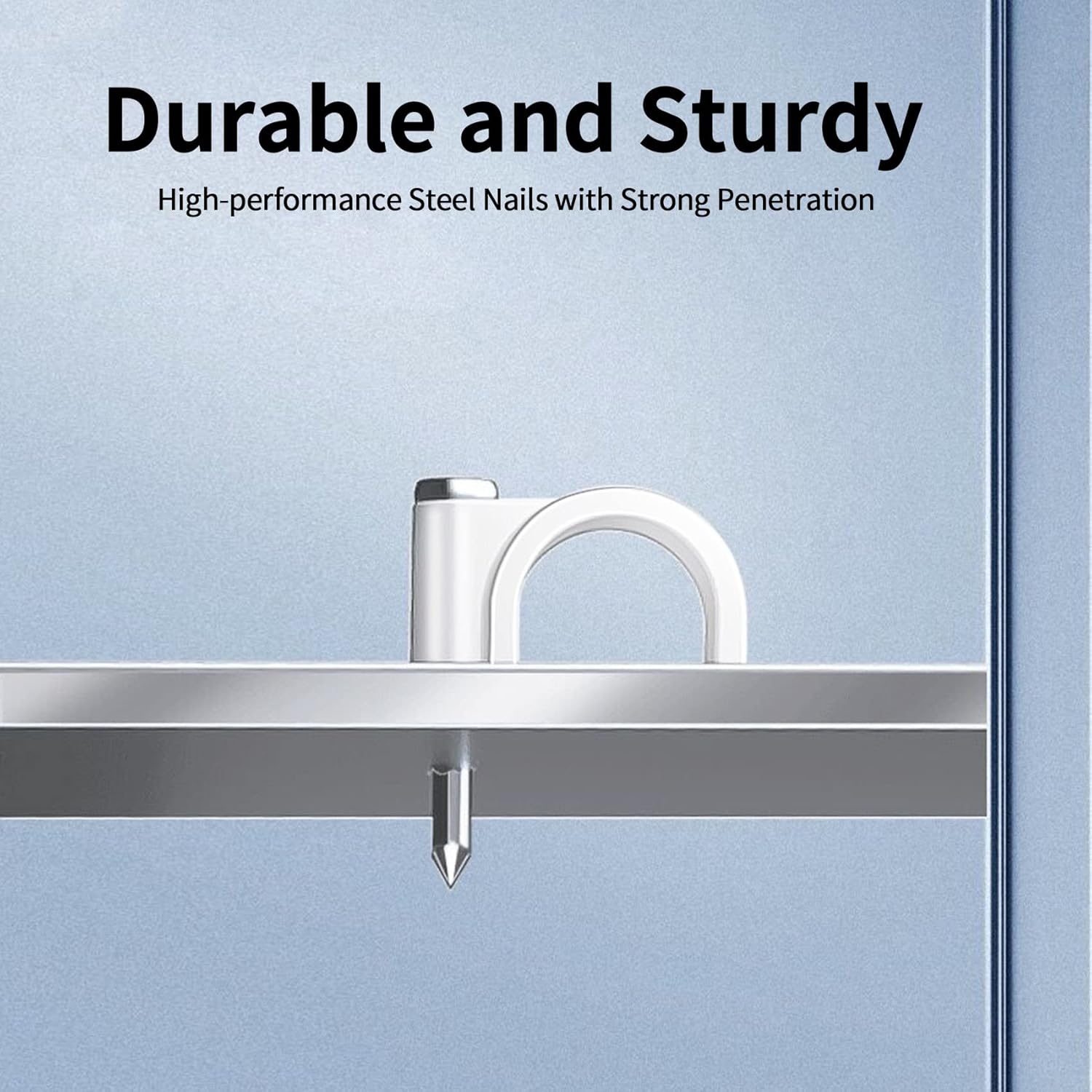 - [ Steel Nail ] Thick high-carbon steel nails that are acid resistant, corrosion-resistant, anti-aging, and have strong bearing capacity, the wires will not fall off frequently and will not waste rework time. Cable clips can be nailed into cement wall.